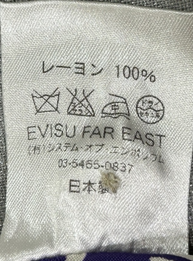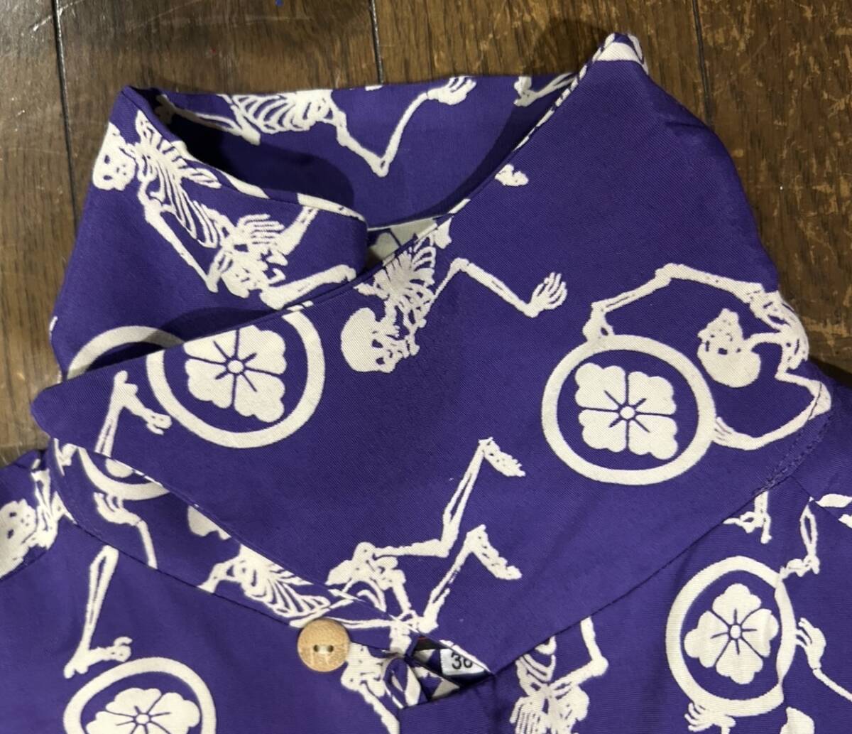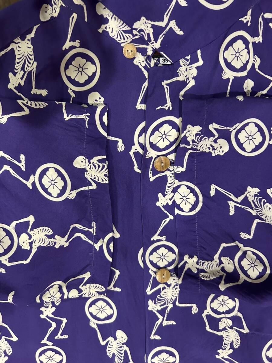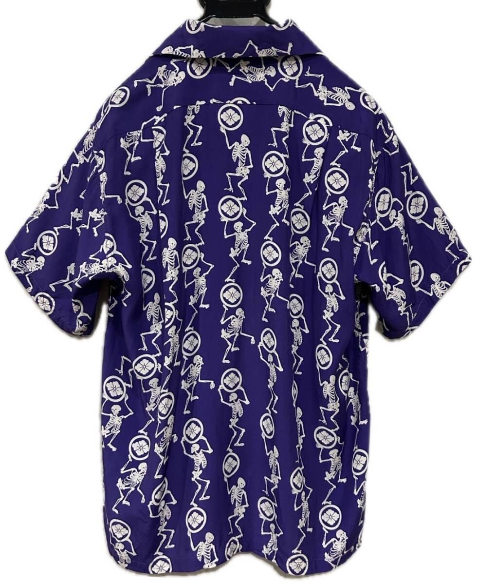 *エヴィス EVISU YAMANE 家紋 骸骨 総柄 レーヨン アロハシャツ 開襟半袖シャツ オープンカラーシャツ トップス 38       BJBE.H