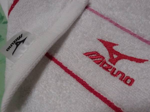 mizuno ミズノ フェイスタオル 白×ピンクボーダー 新品