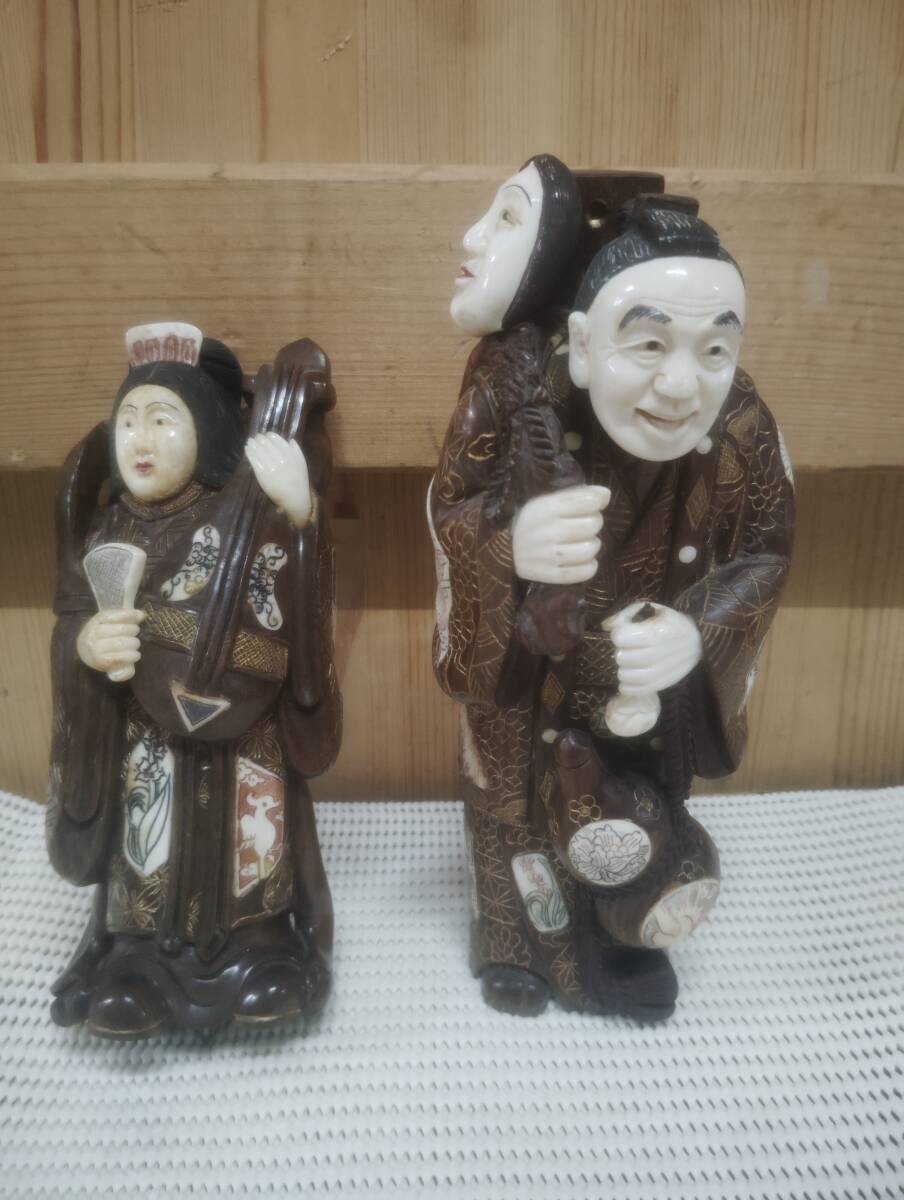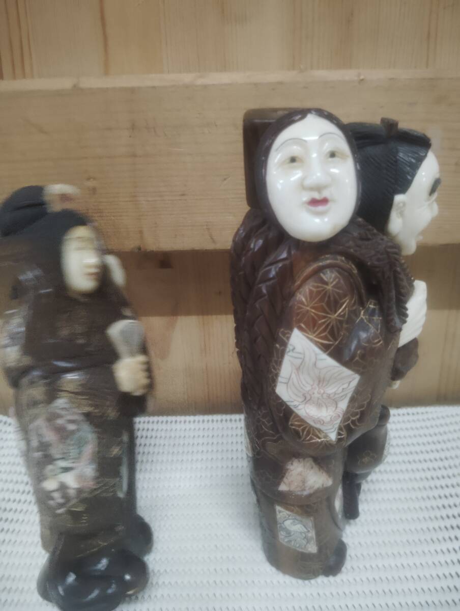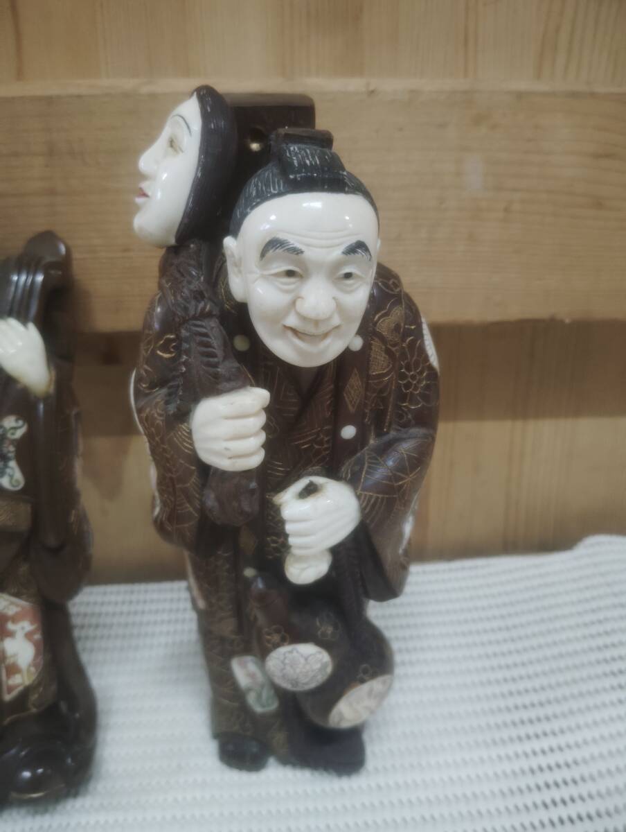 【本】 2点 特殊白材 老人 23cm/700g 20cm/500g 七福神 天女 仮面 老婆 天然素材 時代物 古美術 骨董品 アンティーク 昭和レトロ