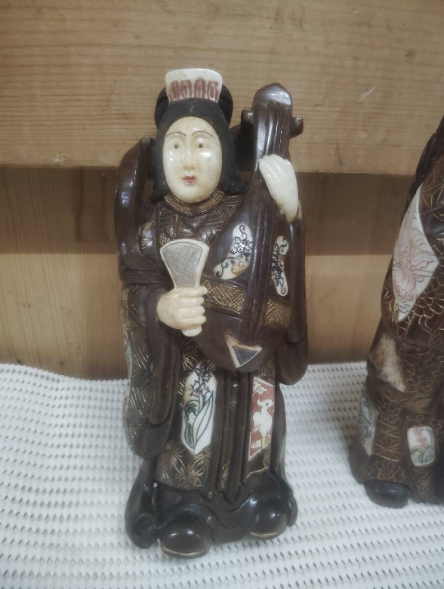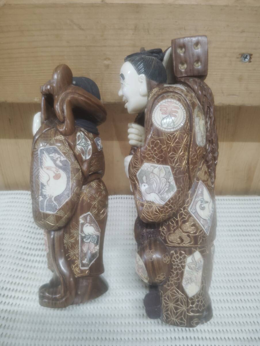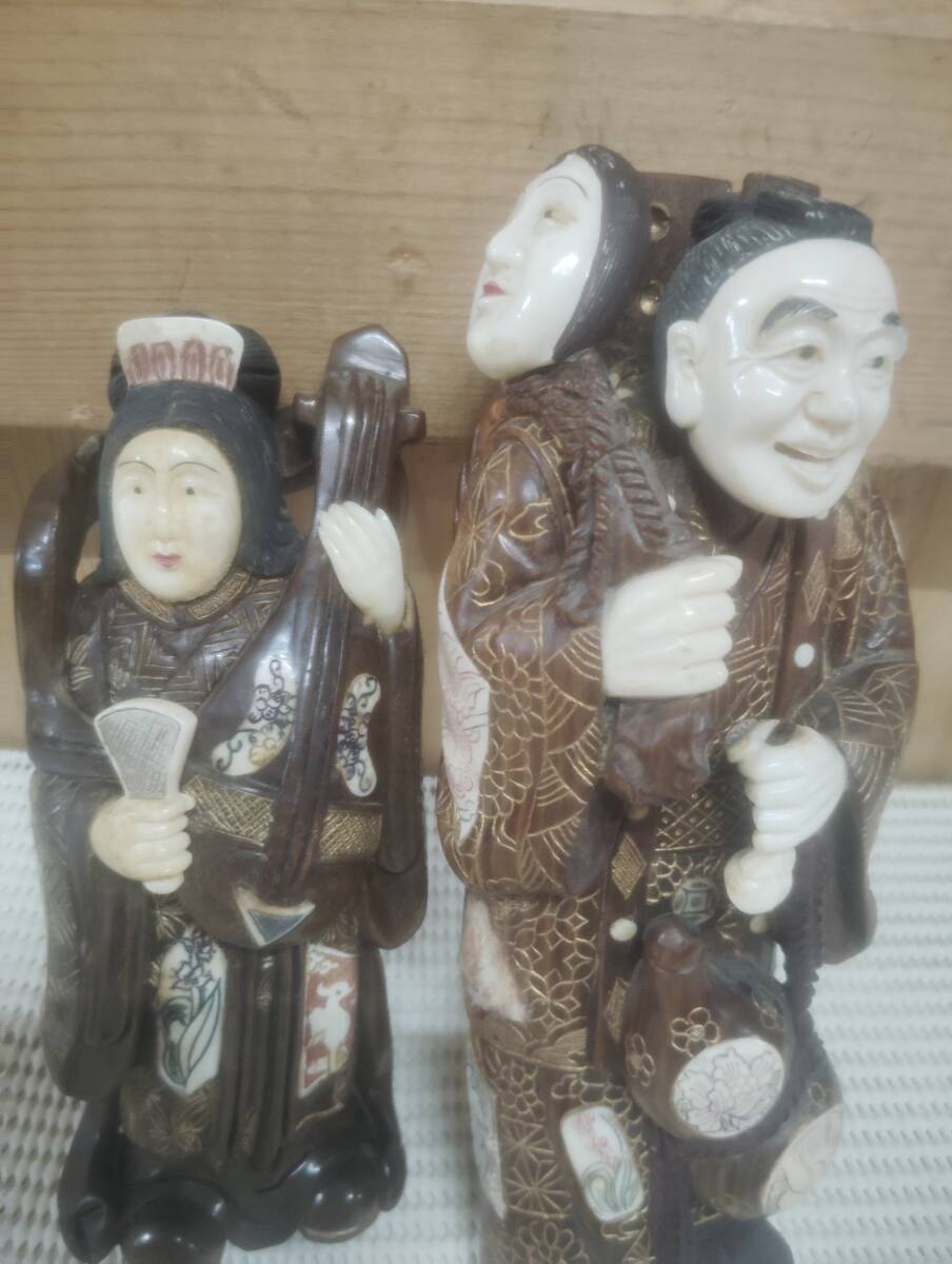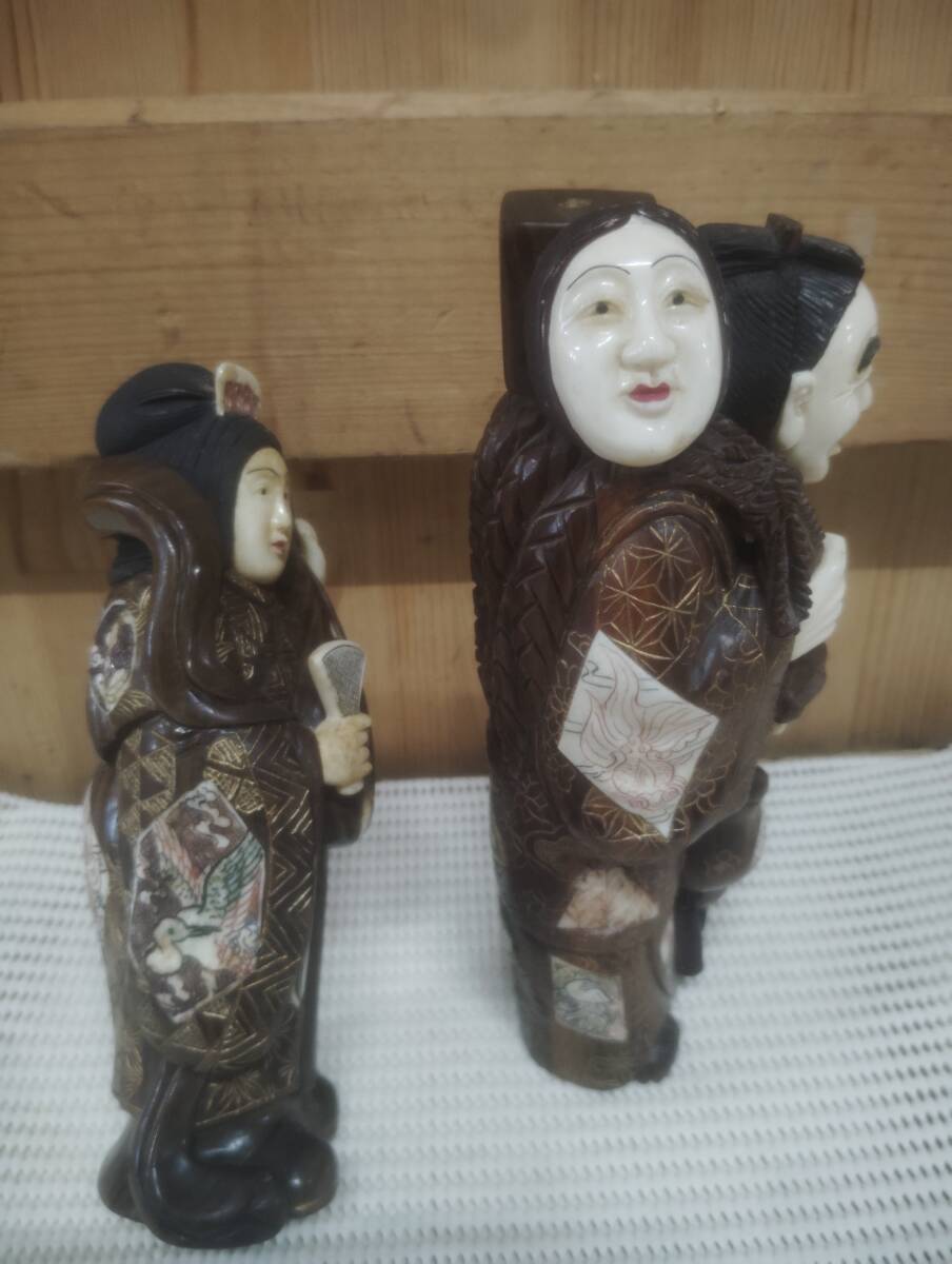 【本】 2点 特殊白材 老人 23cm/700g 20cm/500g 七福神 天女 仮面 老婆 天然素材 時代物 古美術 骨董品 アンティーク 昭和レトロ