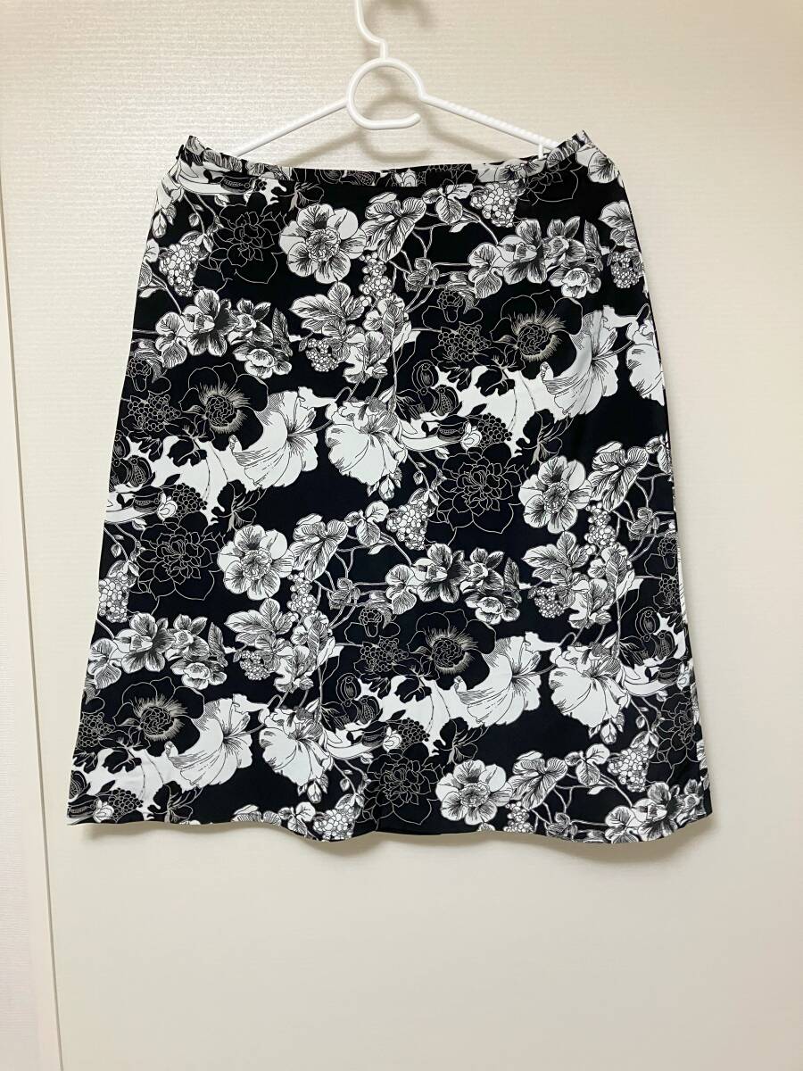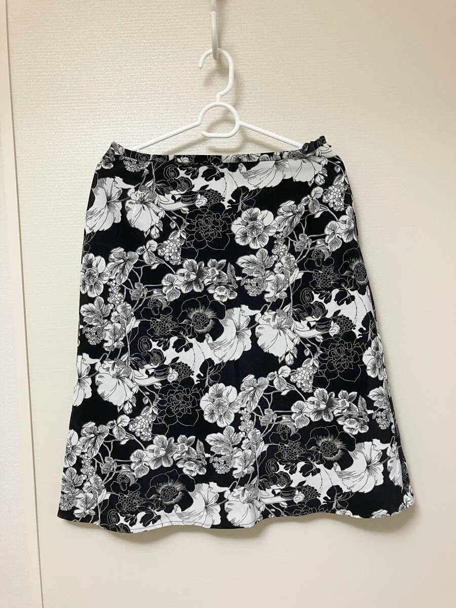 花柄のタイトスカート、お色は白と黒のモノトーン、ウエストは70cmです。