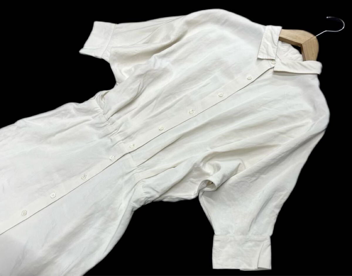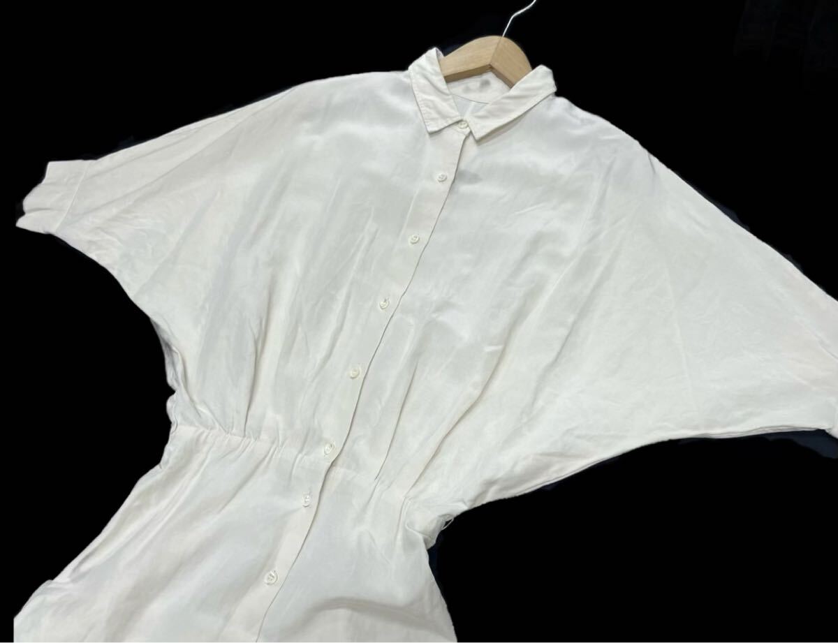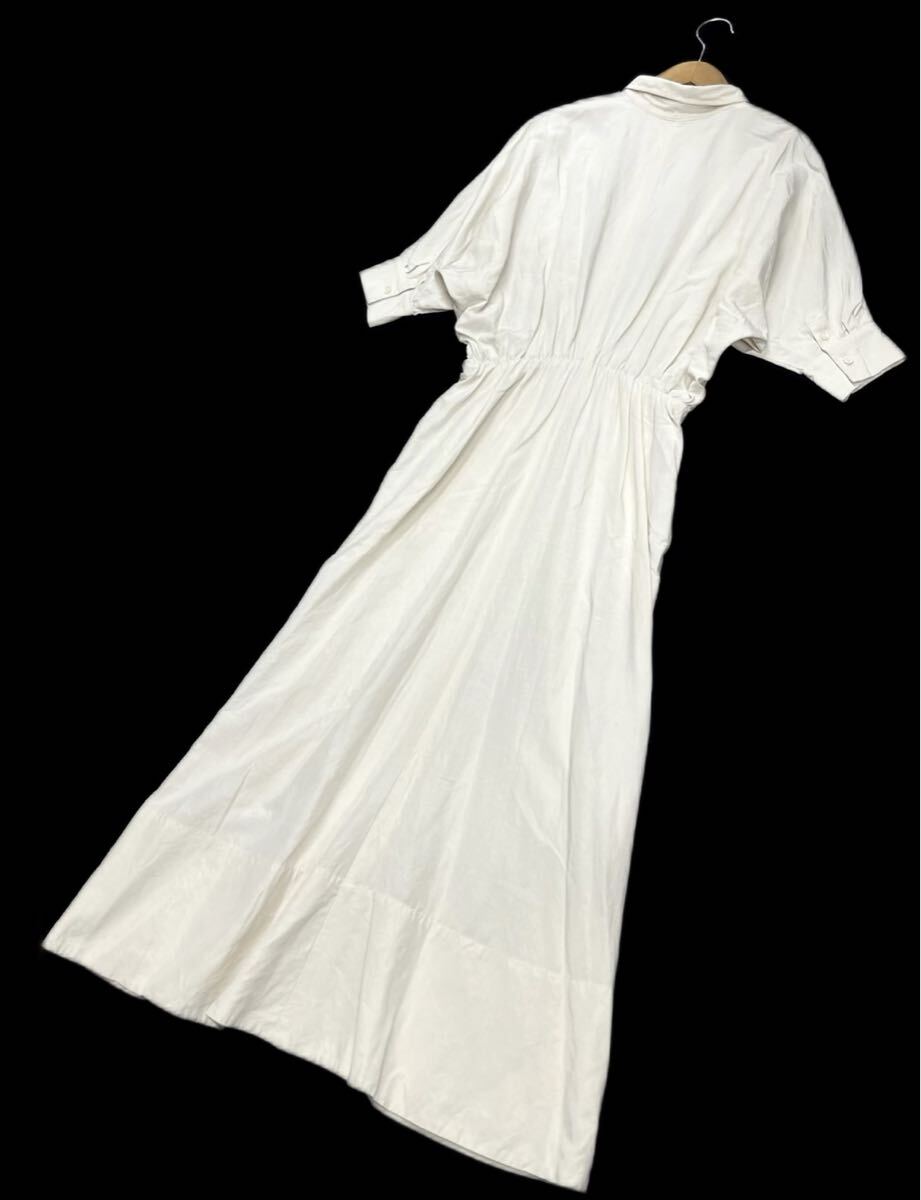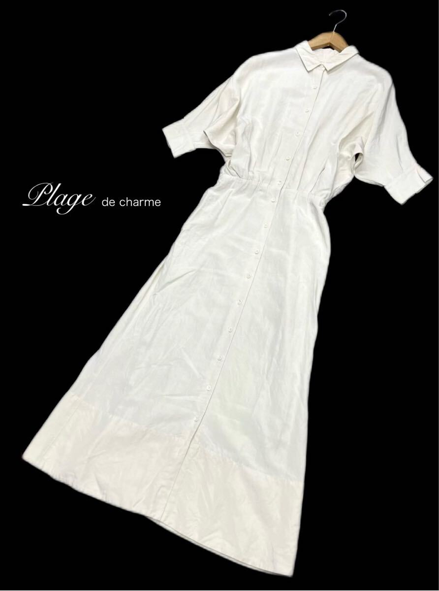 Plage de charme★プラージュ★日本製(36)麻混 ドルマン マキシ丈 ロング シャツ ワンピース/オフ白系 ベルトなし