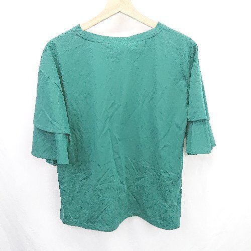 ◇ 美品⊂ グローバルワーク フレア オフィスカジュアル 半袖 快適袖フレアプルオーバー サイズL グリーン系 レディース E