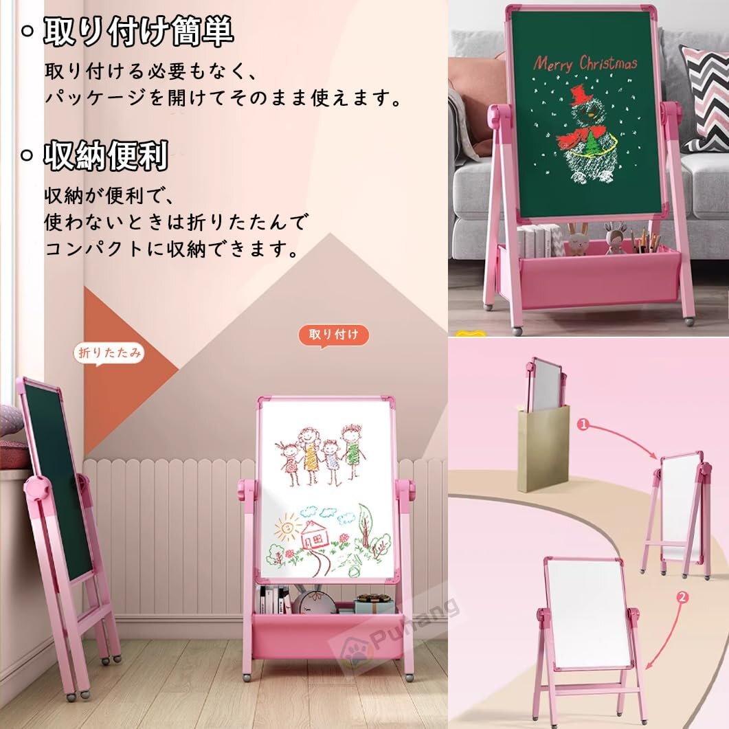 ? 【取り付け簡単注意事項】取り付ける必要もなく、パッケージを開けてそのまま使えます。収納が便利で、使わないときは折りたたんでコンパクトに収納できます。ご注意:製図板の保護フィルムは剥がしてご使用ください。黒板への書き込みにはチョーク、ホワイトボードへの書き込みには水溶性マーカーを使用してください。油性マーカーは使用しないでください。