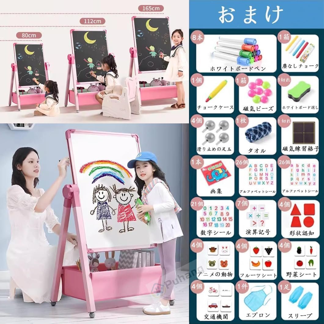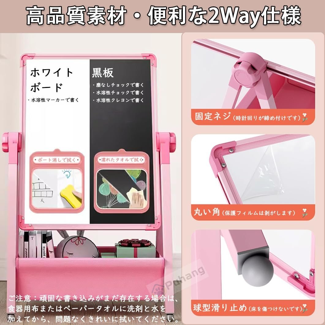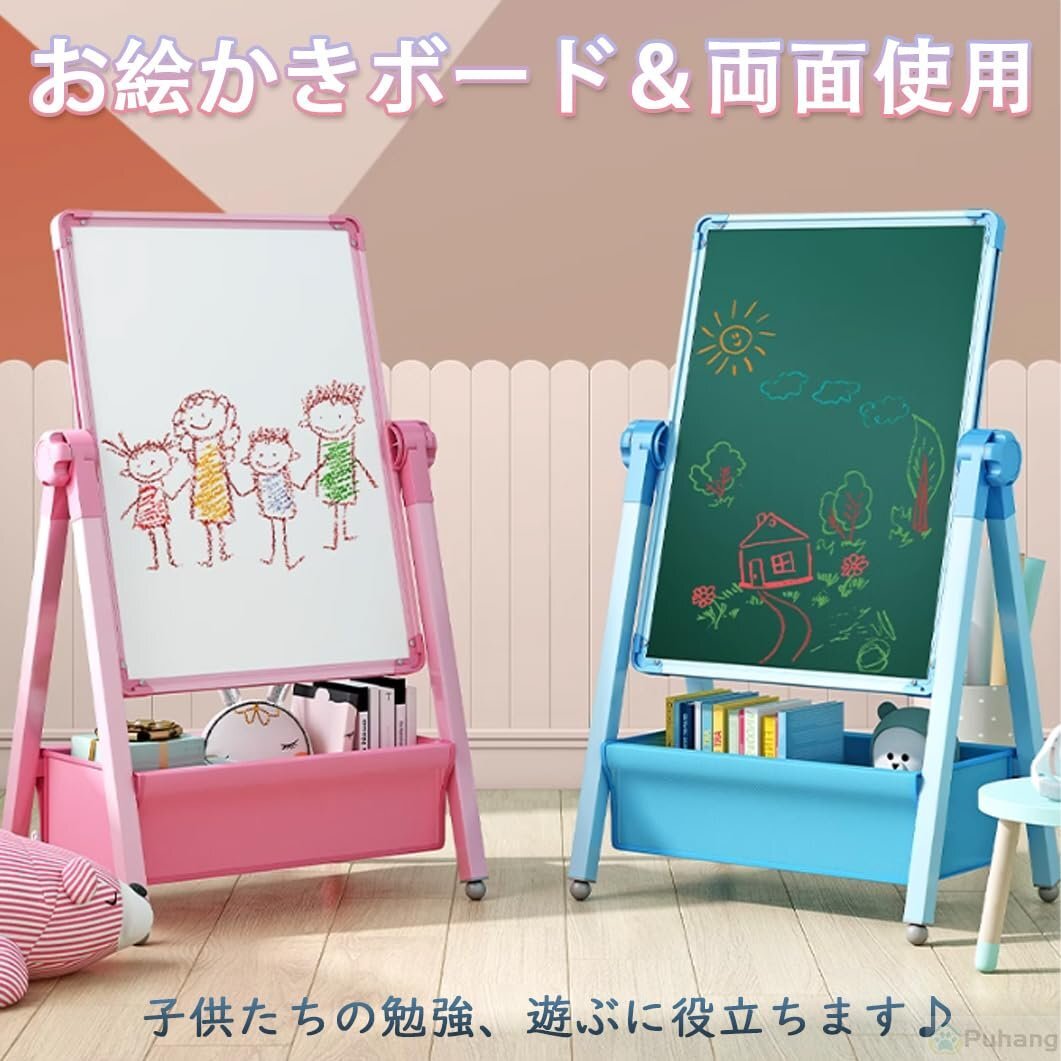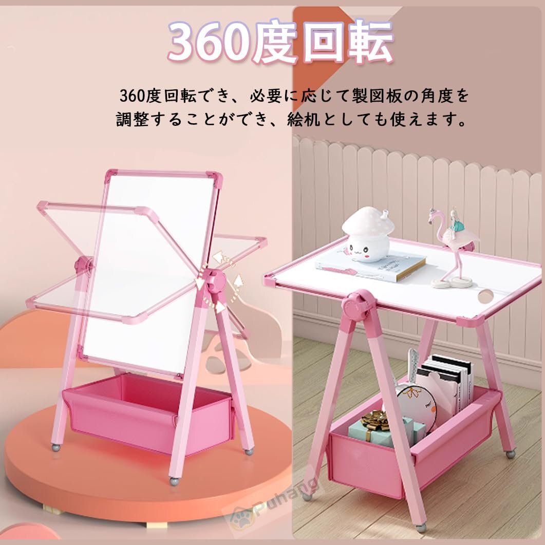 ? 【便利な2Way仕様360°回転】このPuhang製図板は、片面にホワイトボード、もう片面に黒板を配置した両面デザインを採用しており、2人の子供も同時に使えます。360度回転でき、必要に応じて製図板の角度を調整することができ、絵机としても使えます。