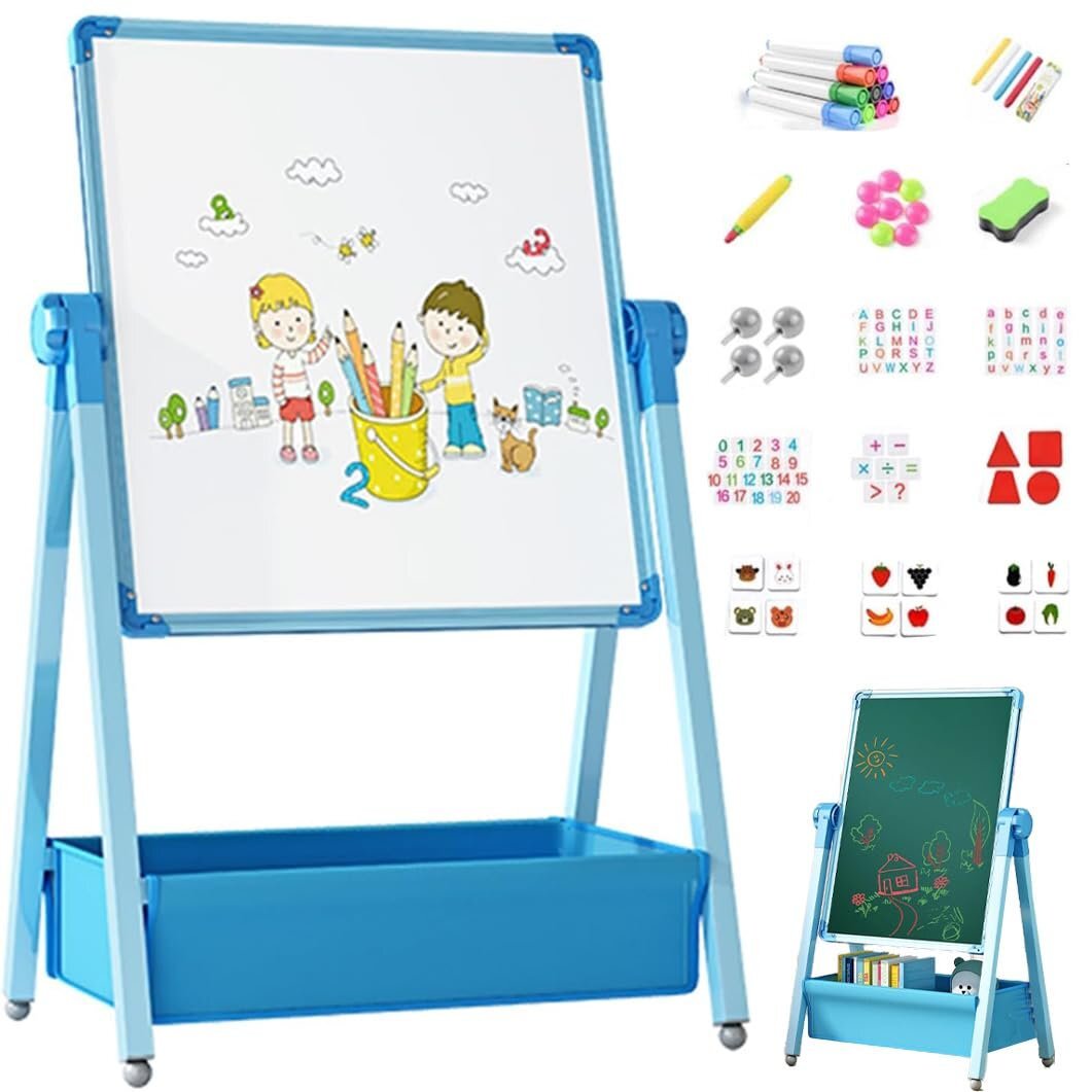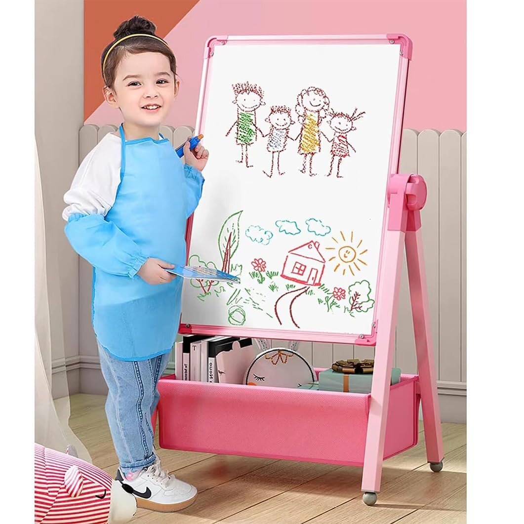 お絵かきボード 黒板 子供用 大画面 収納袋付き イーゼル 98-165cm高さ調整可能 360度回転 磁気筆書板 両面使用 鉄製 折りたたみ式収納 絵