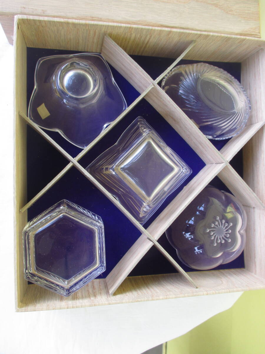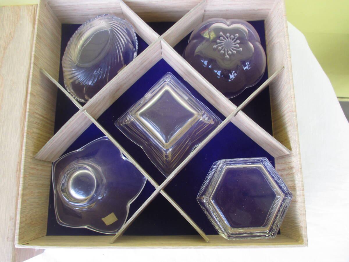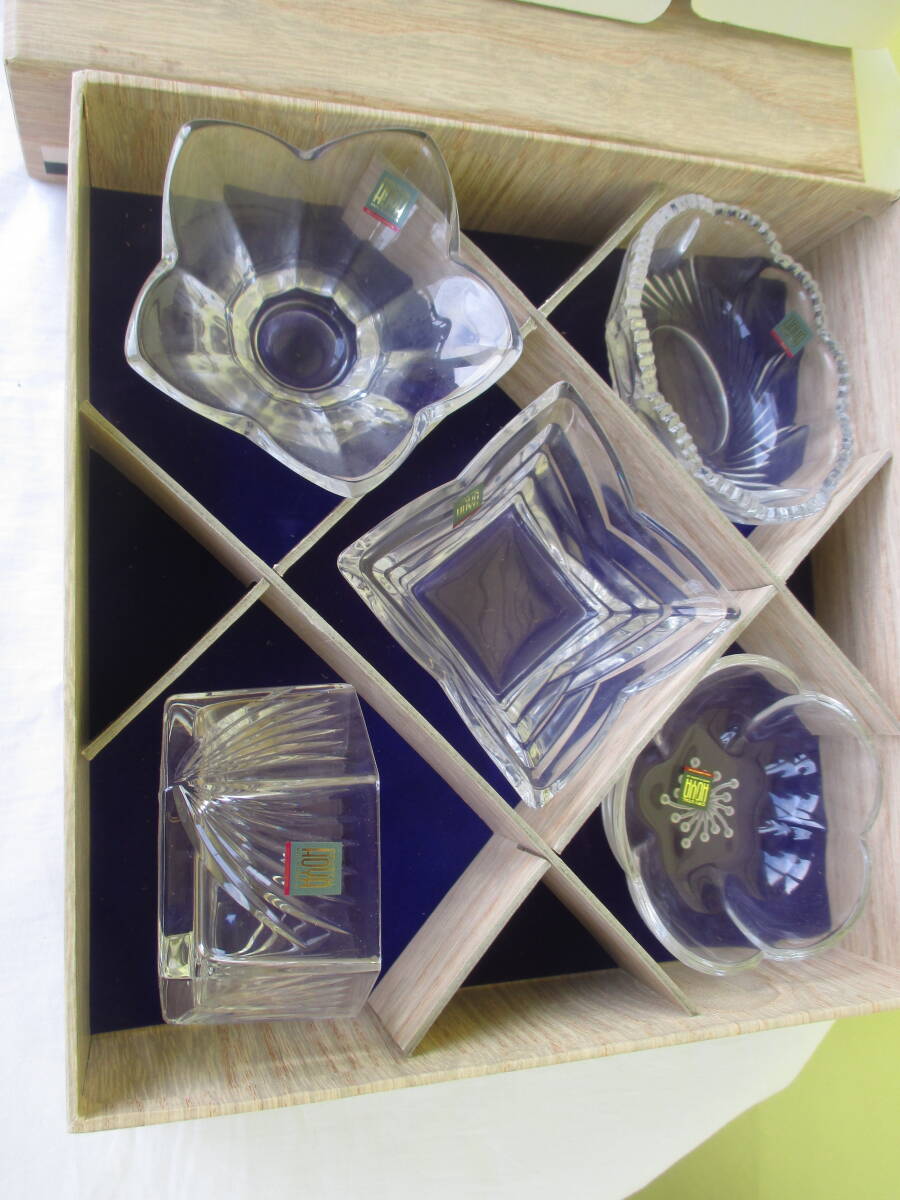 ★HOYA ホヤクリスタル 小さい器 小鉢五客 NBS8005 ガラス食器 食卓 専用箱付 家庭内保管品 現状品