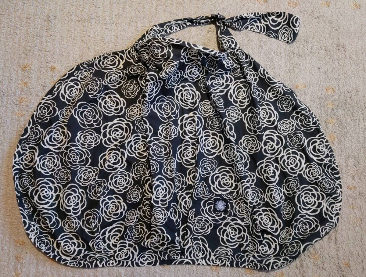 中古 授乳ケープ カメリア柄 首元にソフトワイヤーが入っていますので,使いやすいです。ポリエステル65%,綿35%。箱は畳んでお送りします。