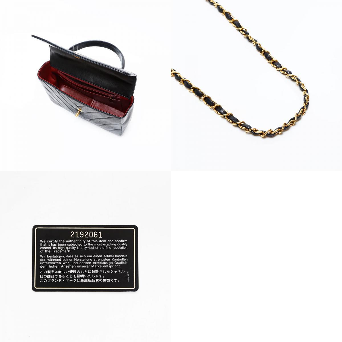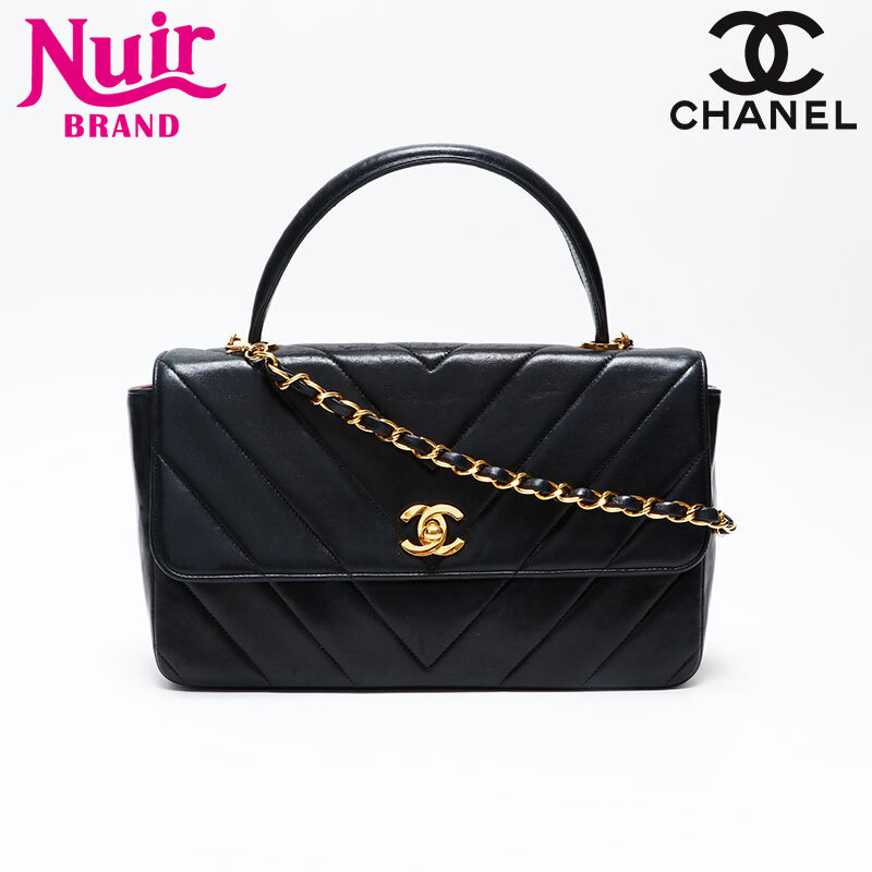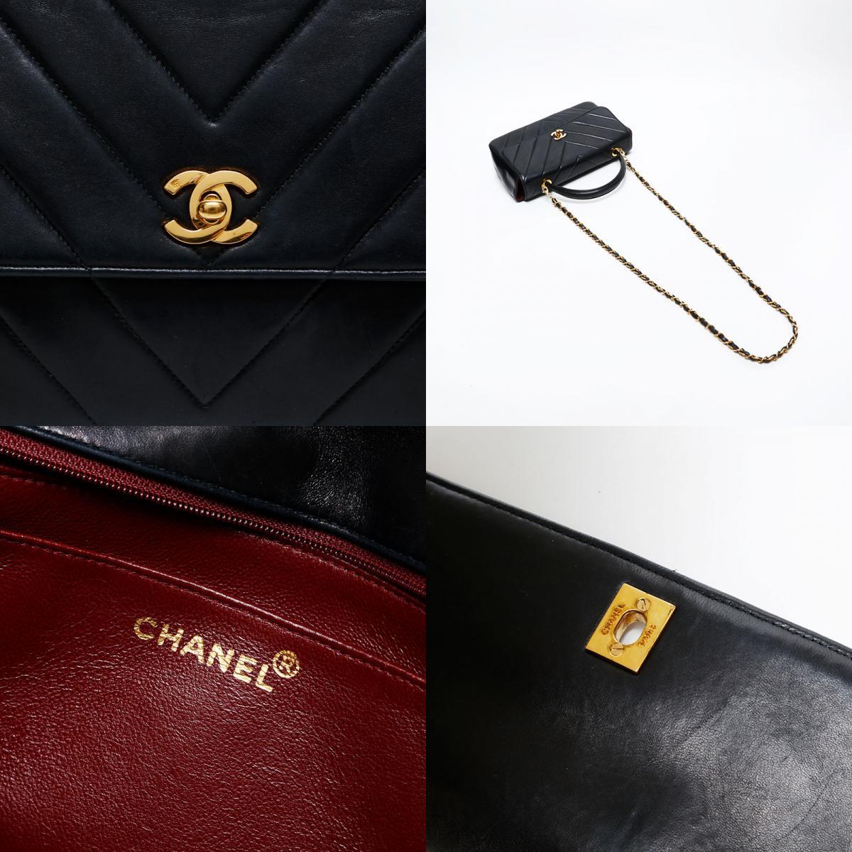 極美品 CHANEL 2番台 1991-1994 トップハンドル ラムスキン シェブロン チェーン ショルダーバッグ ブラック