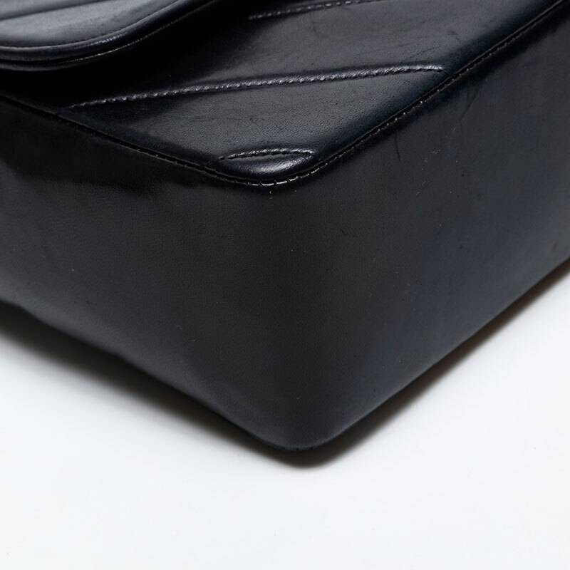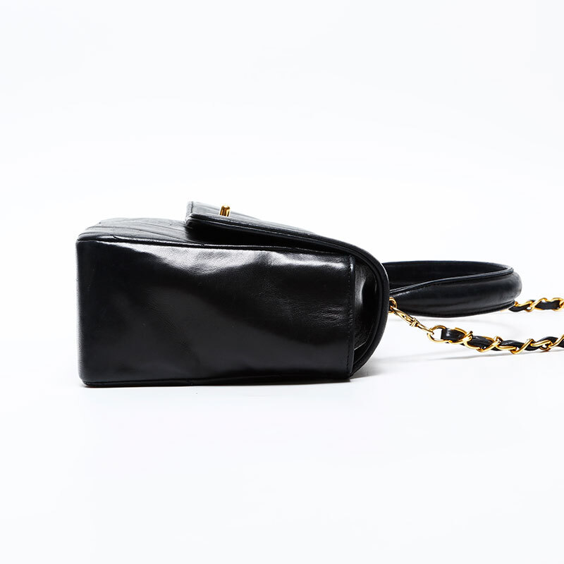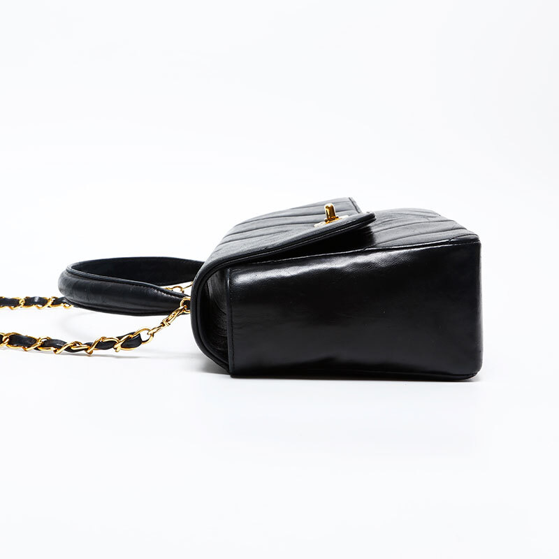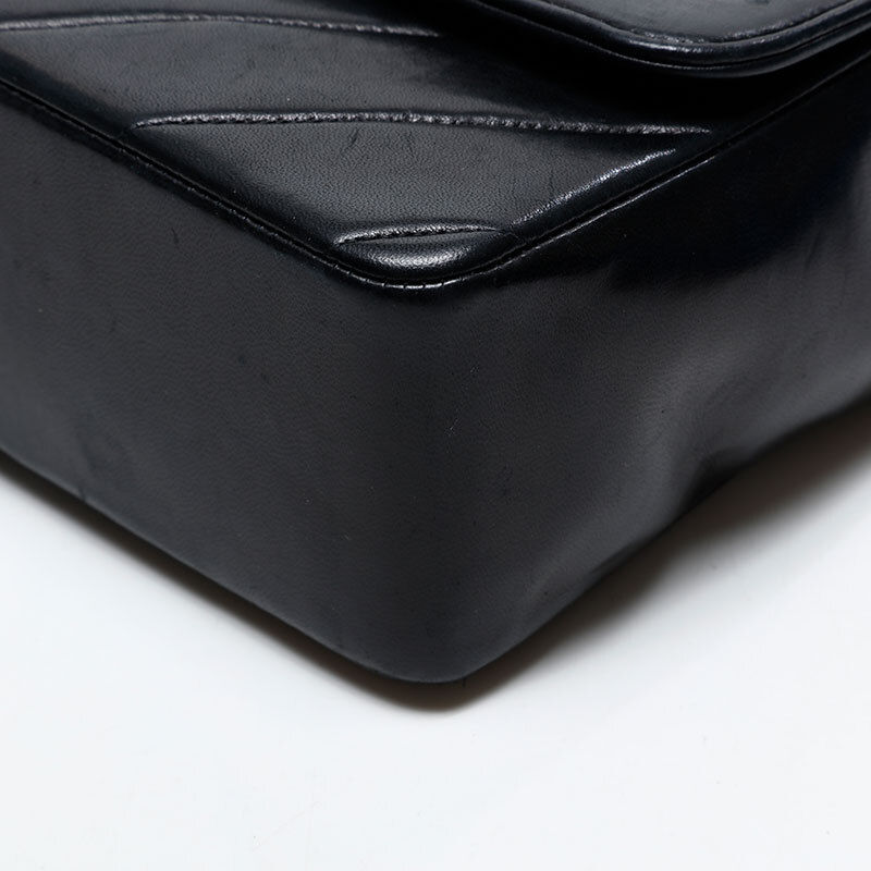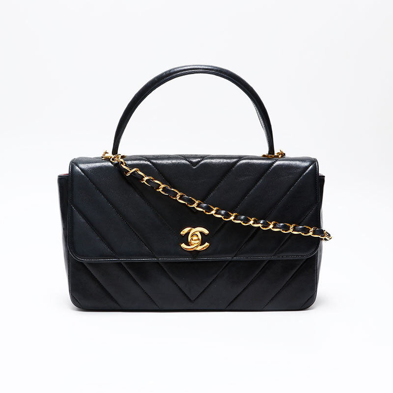 極美品 CHANEL 2番台 1991-1994 トップハンドル ラムスキン シェブロン チェーン ショルダーバッグ ブラック