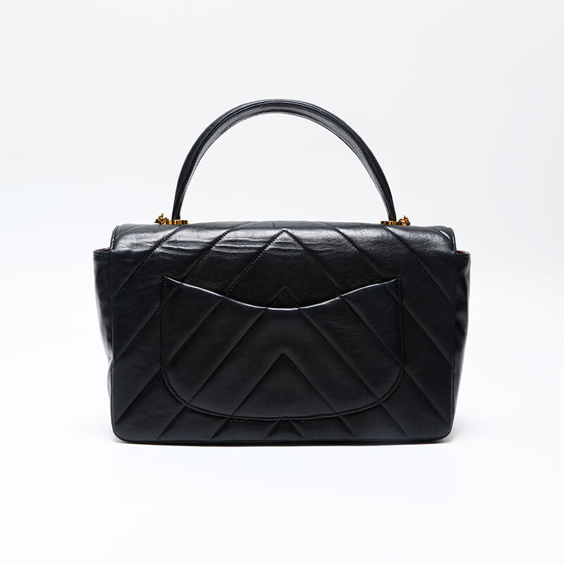 シャネル CHANEL ショルダーバッグ 2番台 1991-1994 トップハンドル ラムスキン シェブロン チェーン ブラック