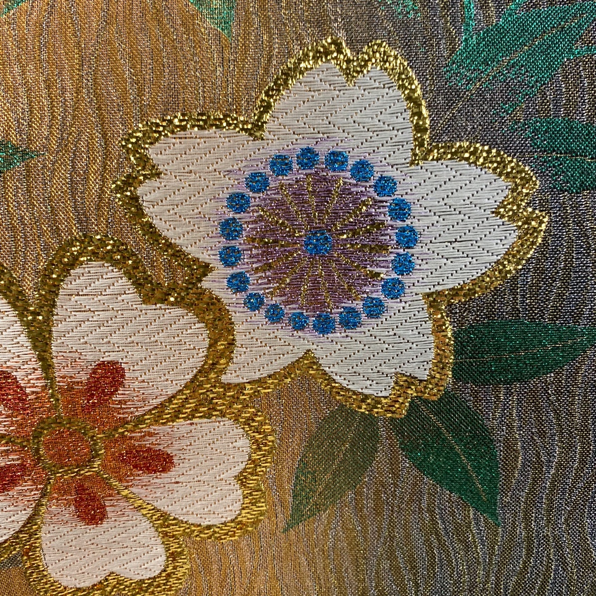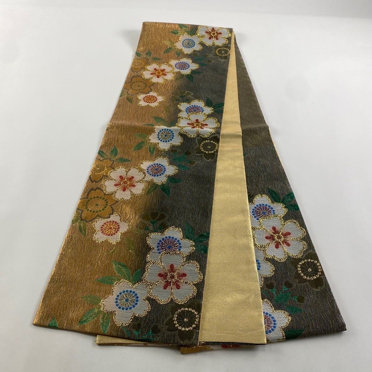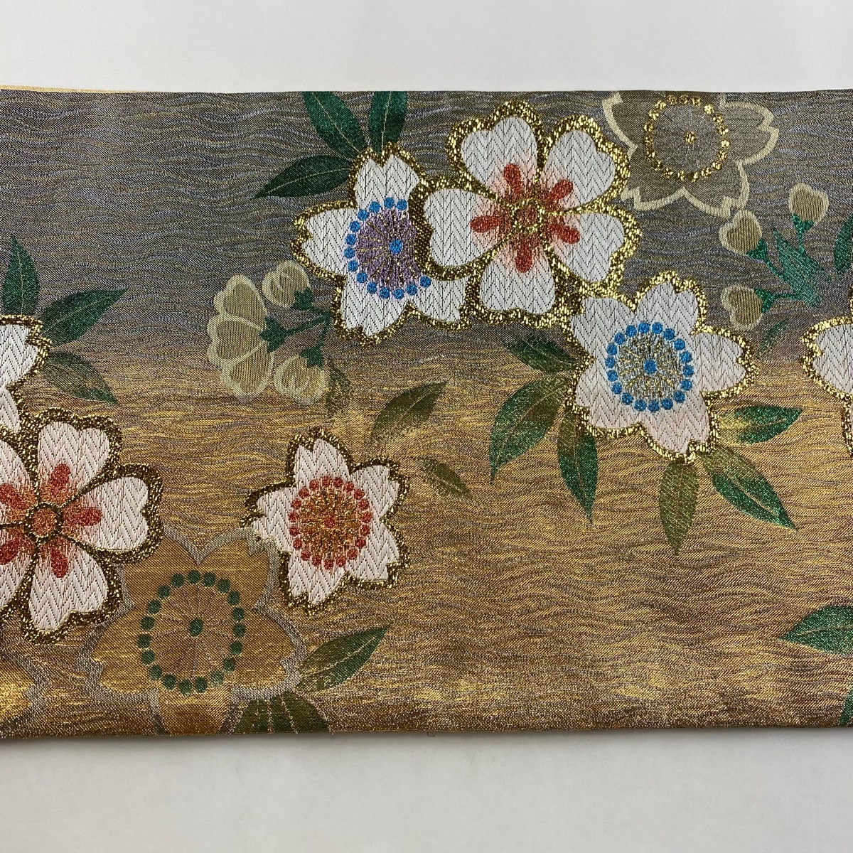 | 袋帯 美品 秀品 桜 銀糸 箔 金色 六通 正絹 【中古】 |