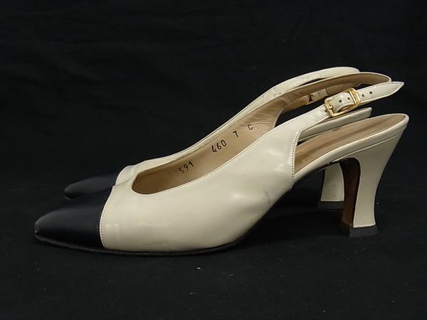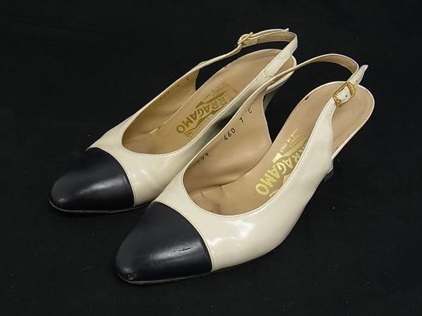 ■美品■ Salvatore Ferragamo フェラガモ レザー スリングバック パンプス ヒール 表記サイズ7(約24.5cm) 靴 シューズ DG4838