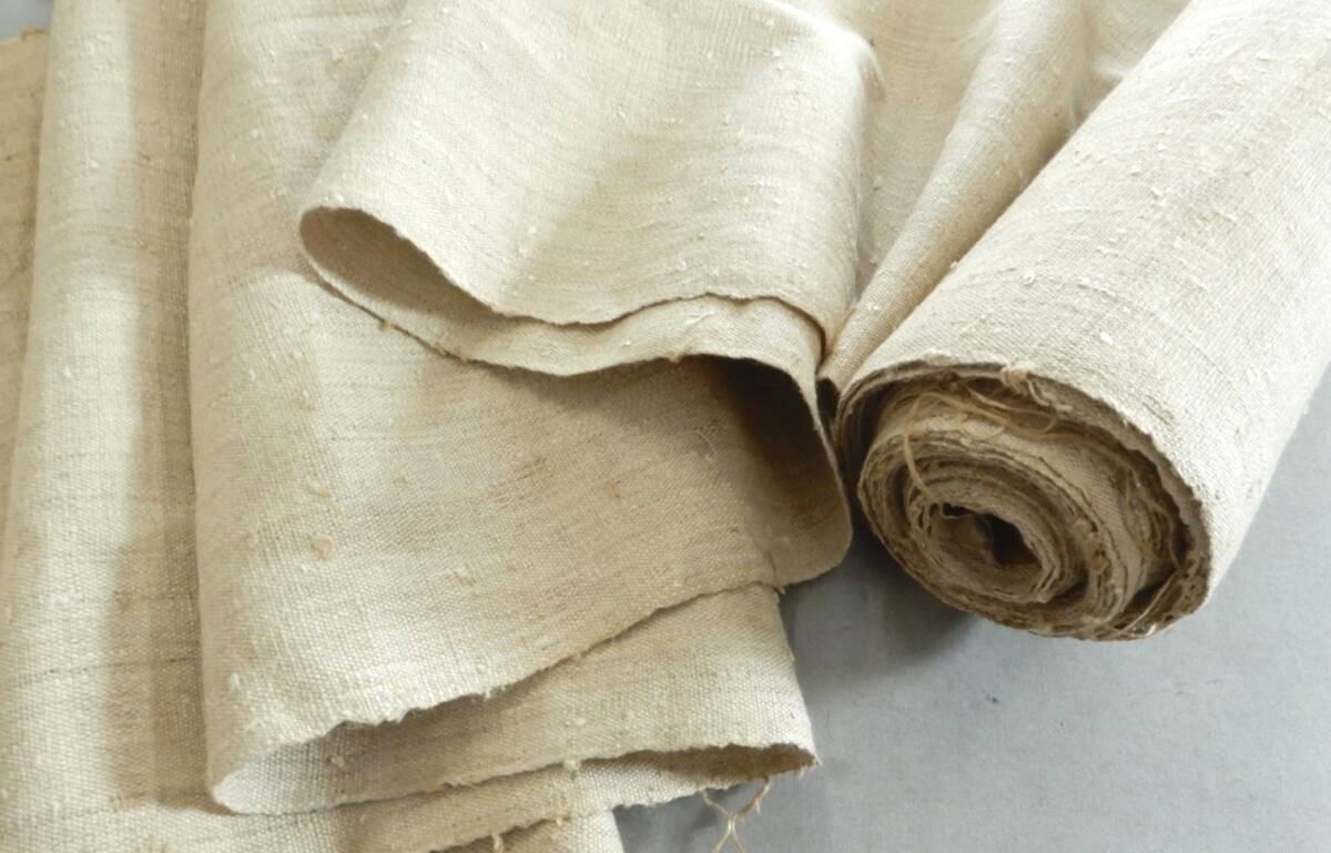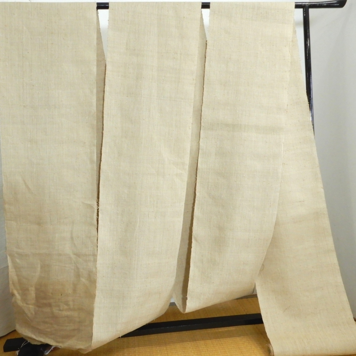<銀の斧>手紡手織綿麻反物・大正期前後のお品・10.8m・生成色