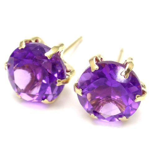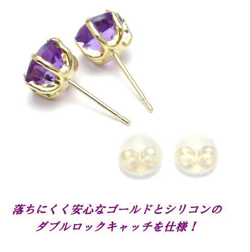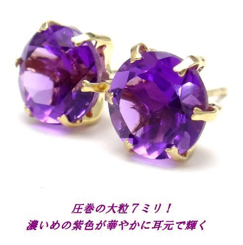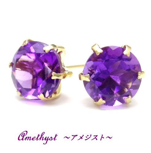 K10 アメジスト 7mm ラウンド スタッドピアス 大粒 WG YG 選べるゴールド ジュエリー 紫水晶 パワーストーン 天然石 2月誕生石 箱付き