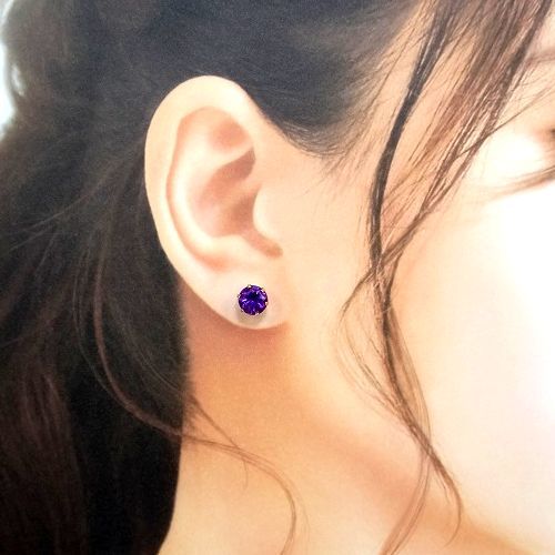 濃いめの鮮やかな紫色が美しいアメジストのスタッドピアスです。