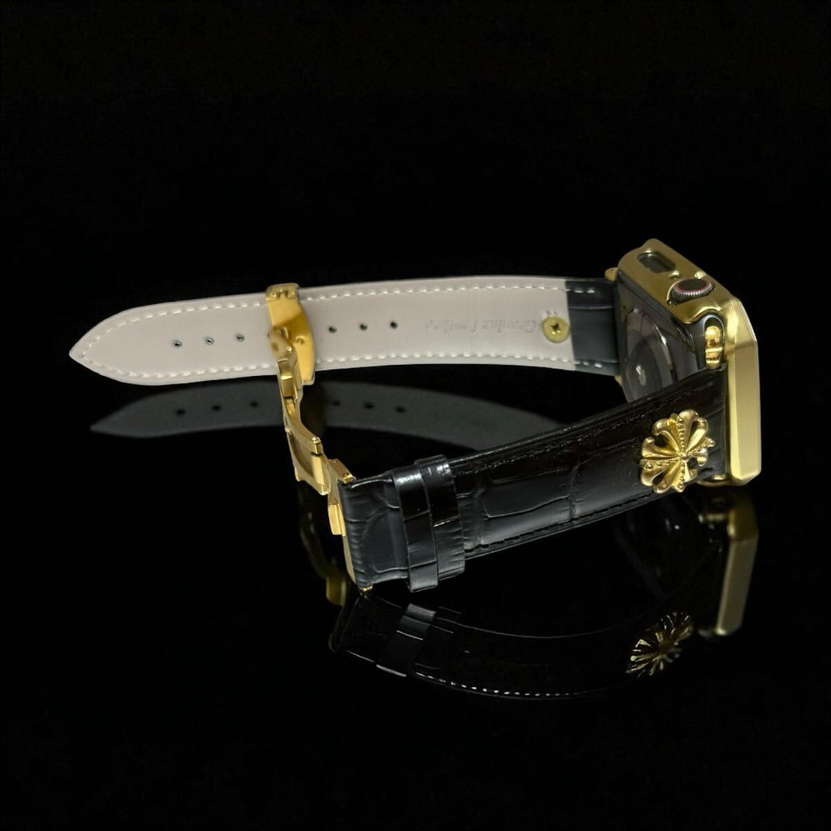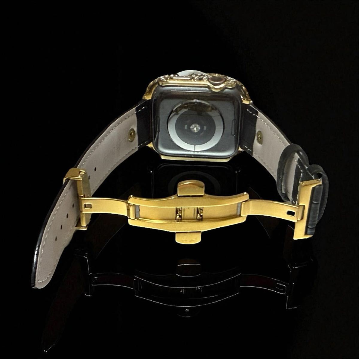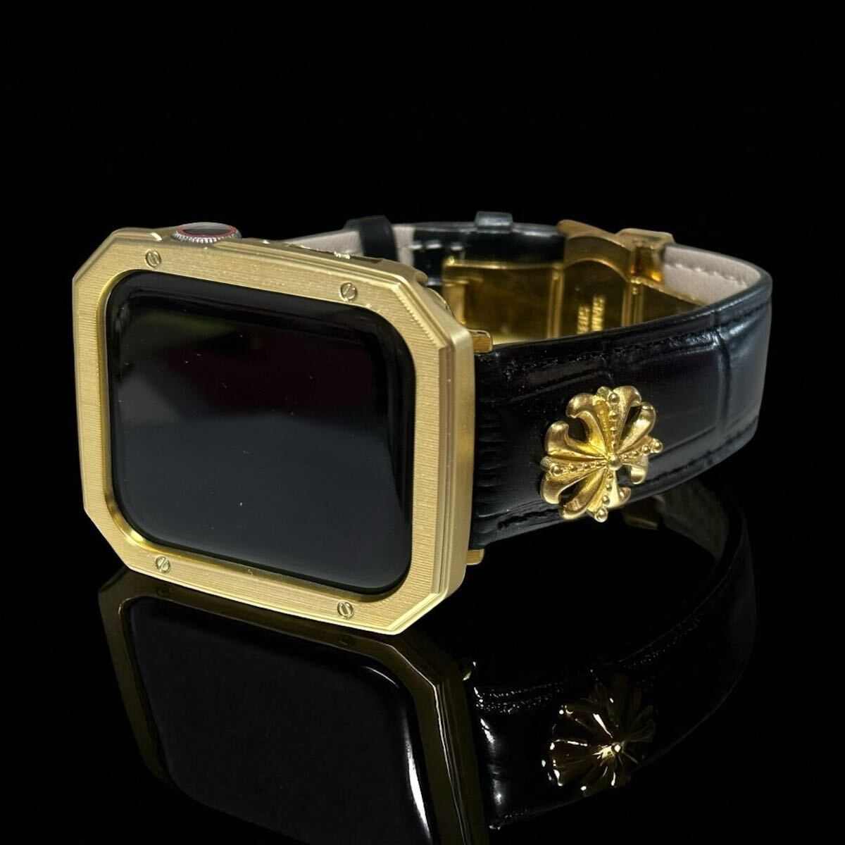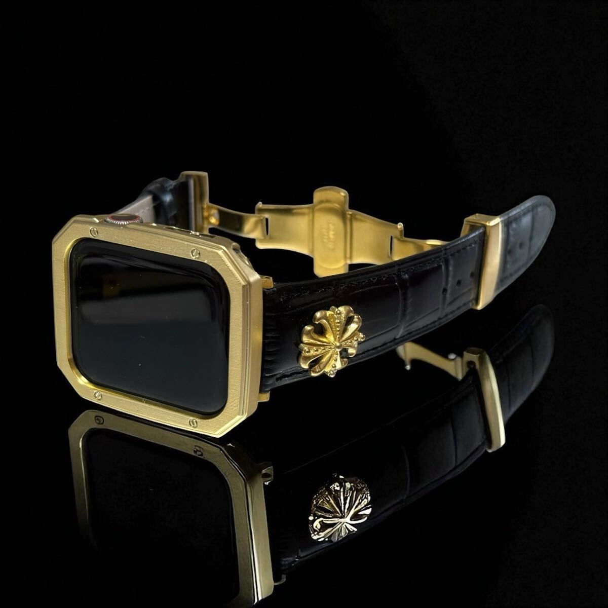 高耐久のポリカーボネート素材を使用したスクエアケース。シャープなエッジとマットゴールドの質感が、Apple Watchをラグジュアリーな印象に引き上げます。単品使用も可能。