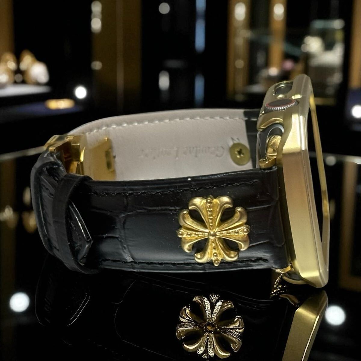 程よい厚みのある上質な牛革を使用。クラシカルなデザインに、ゴールドのクロスモチーフが高級感を演出。Dバックル仕様で着脱も簡単。ベルト単体でも他のケースと組み合わせ可能。