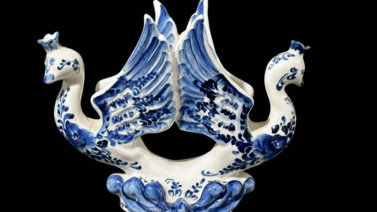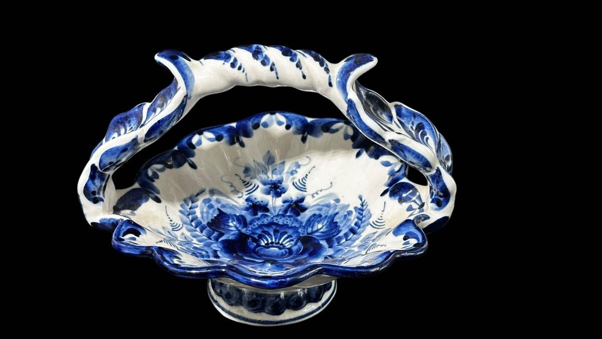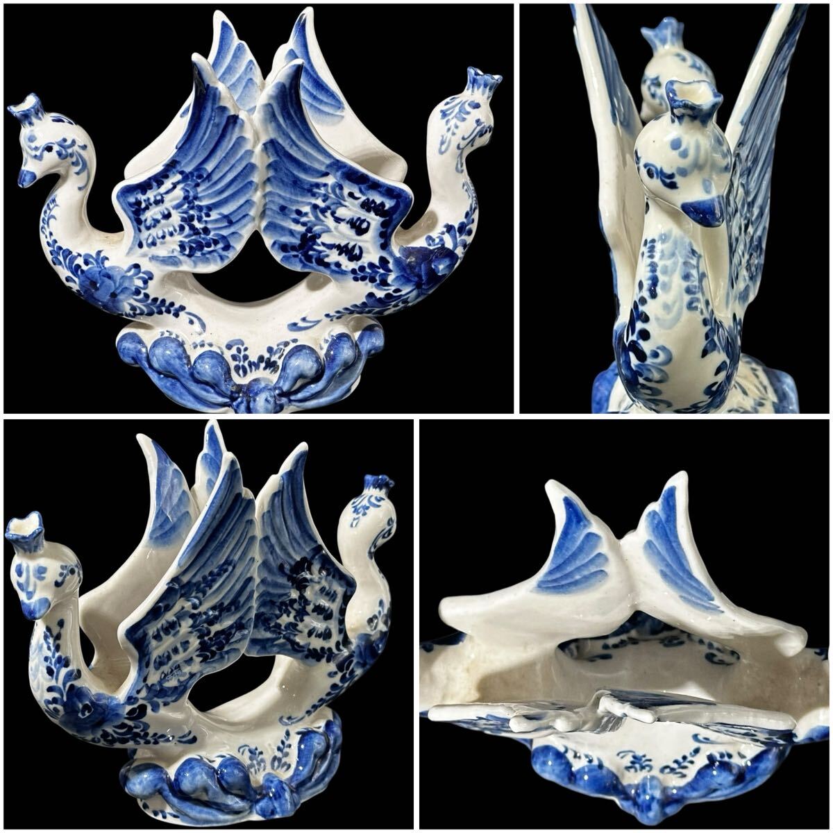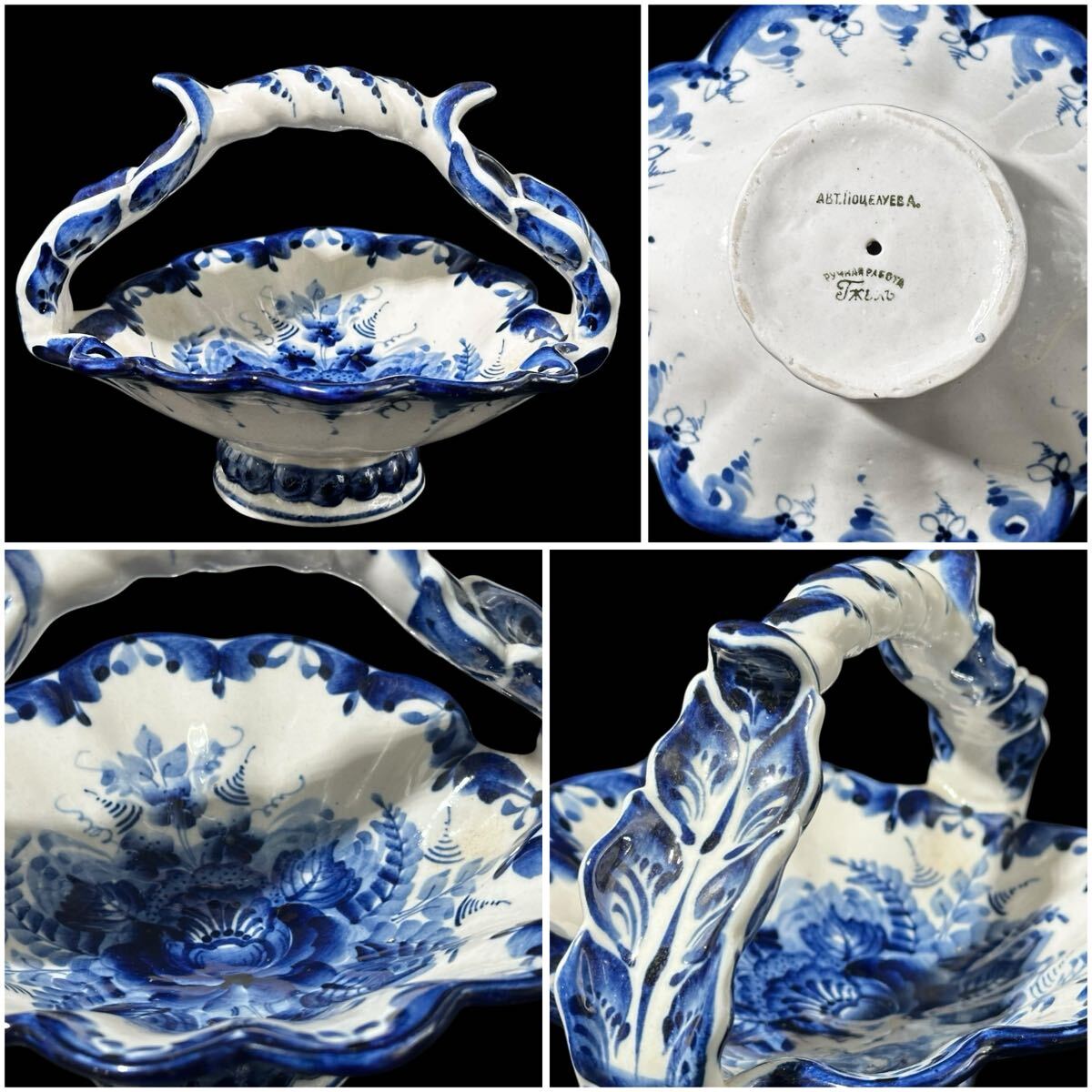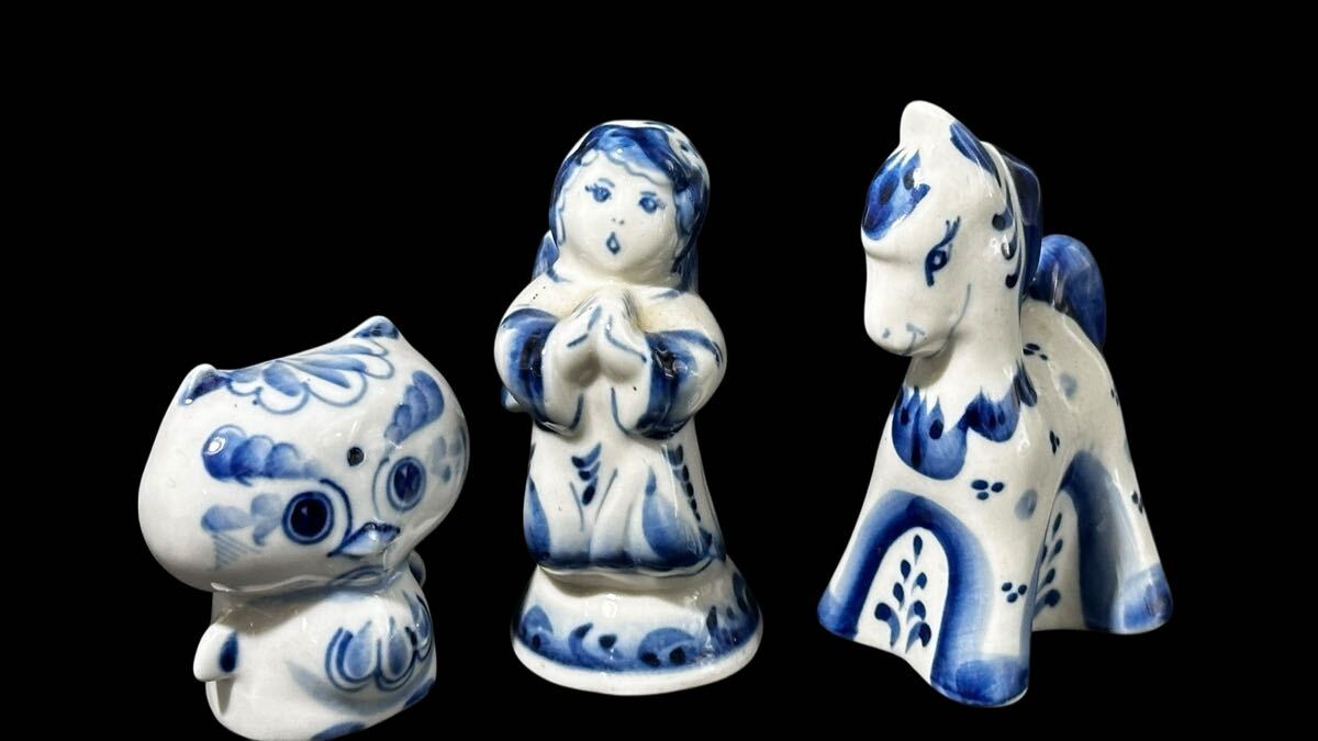 【商品の説明】ロシア民族陶芸 グジェリ焼 セット 花形皿 白鳥 子馬 天使 フクロウ 置物 洋風インテリア オブジェ ペテルブルグ お土産品