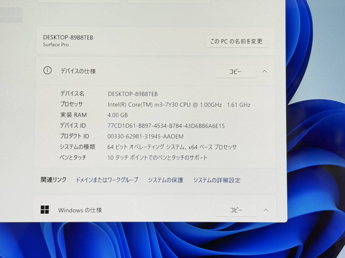 【良品 12.3インチ】Microsoft Surface Pro 5 model:1796『Core M3(7Y30) 1Ghz/RAM:4GB/SSD:128GB』Wi-Fi Win11 動作品