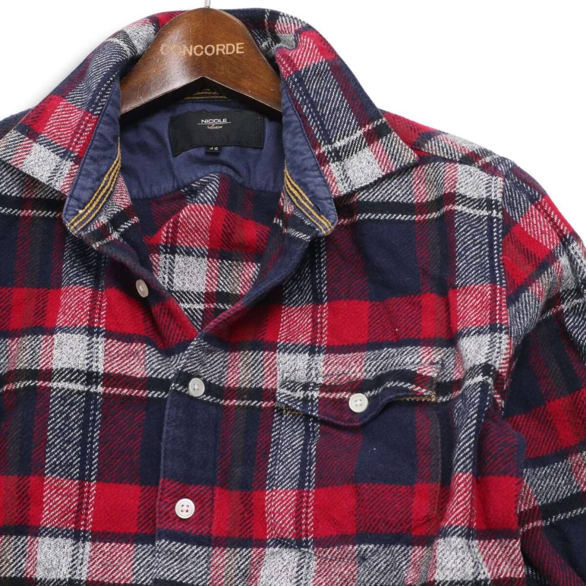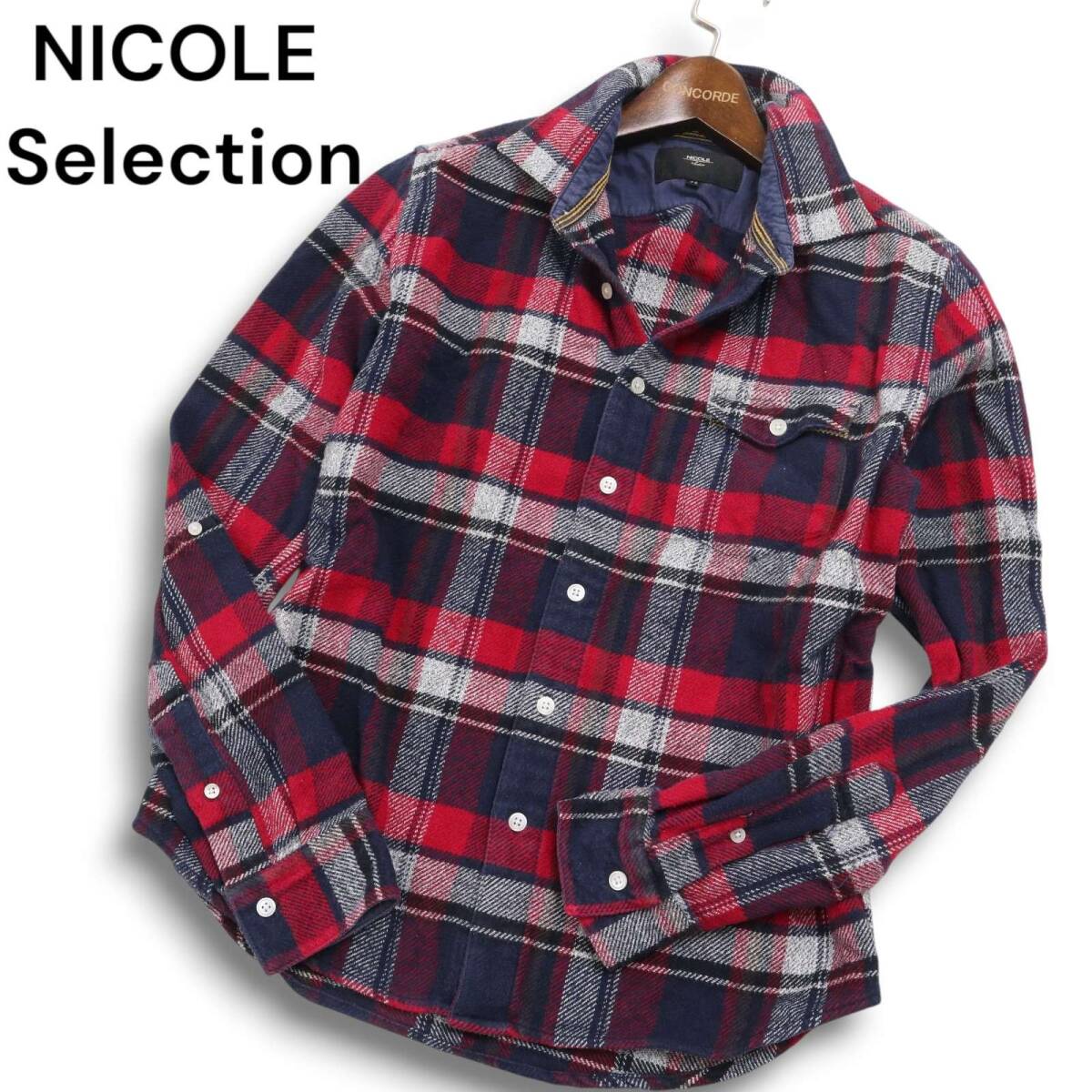 NICOLE Selection ニコル セレクション 秋冬★ 長袖 ワーク チェック フランネル シャツ Sz.46 メンズ