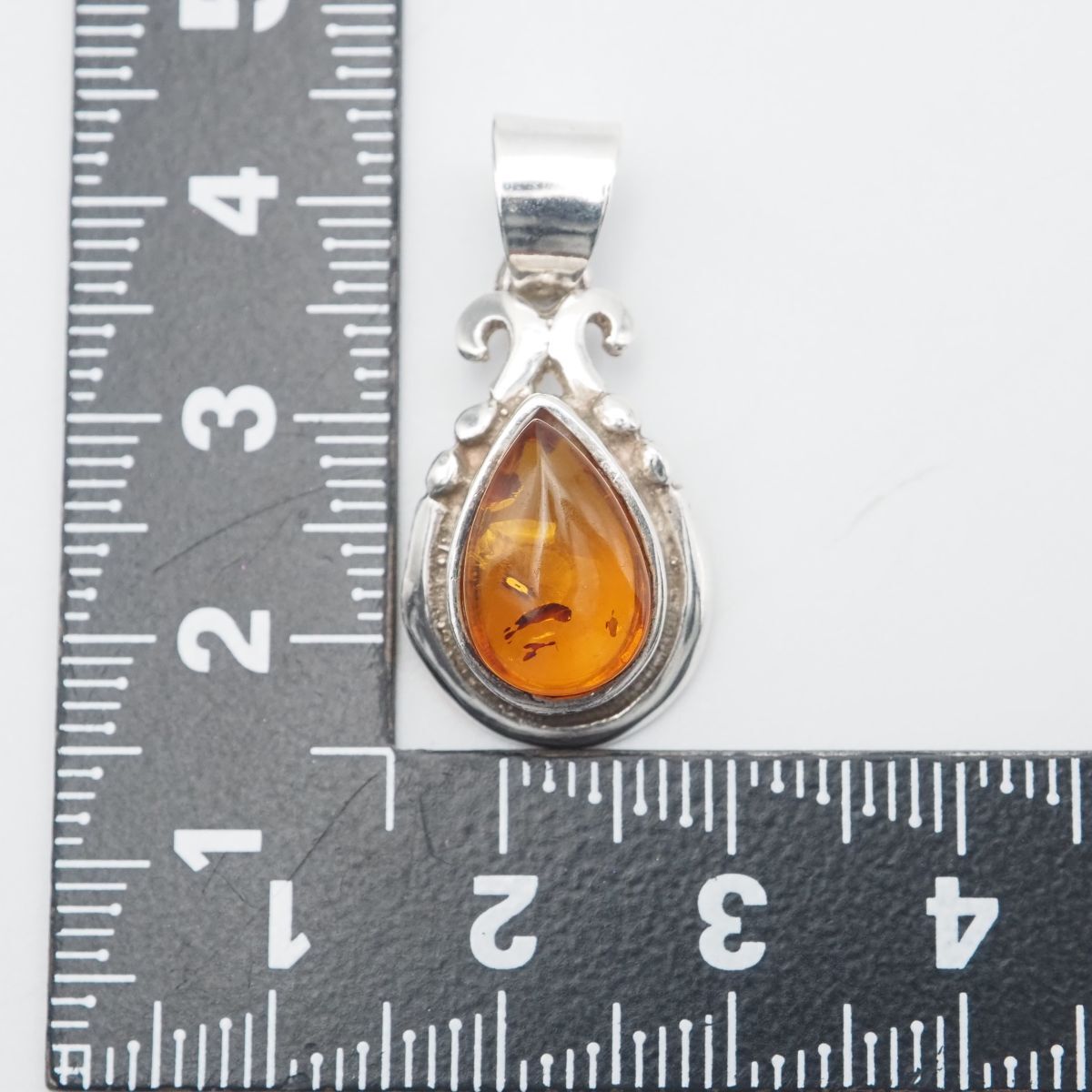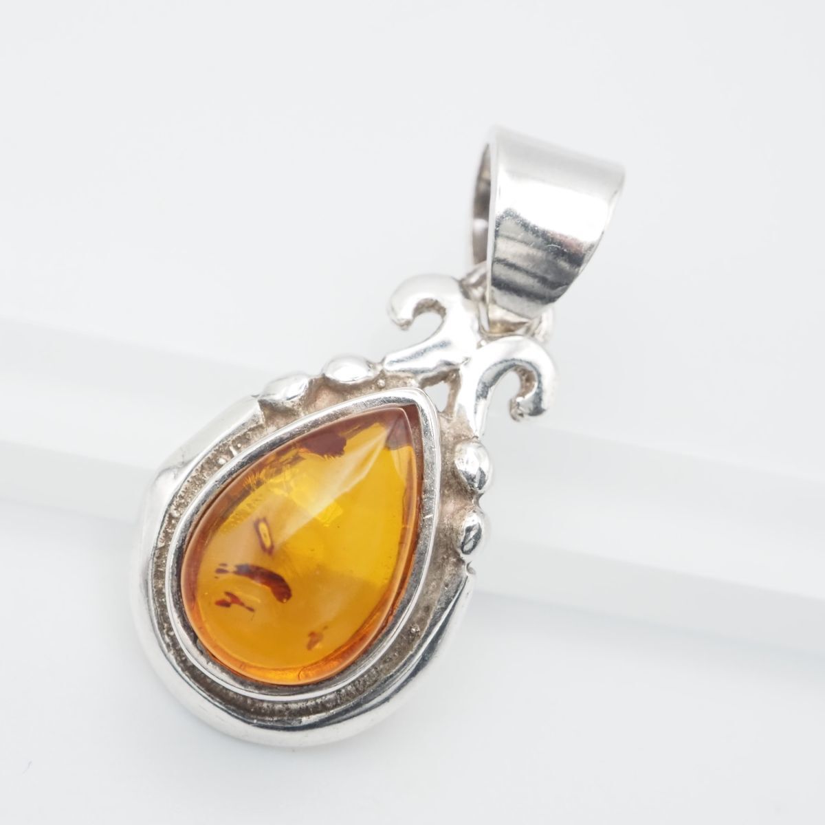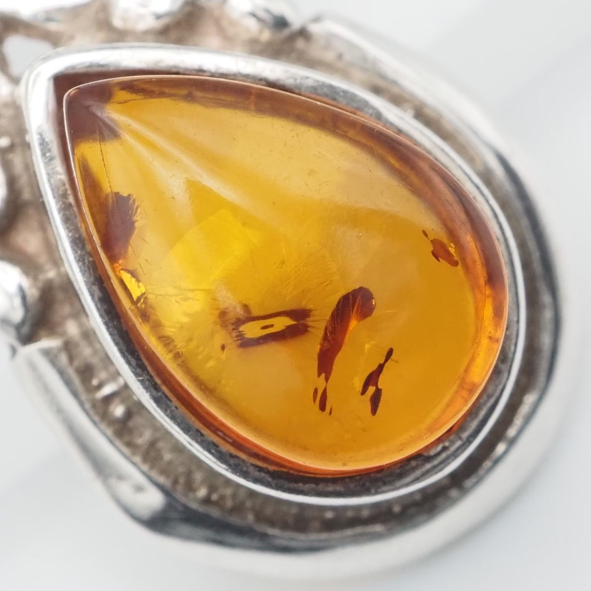 C262 琥珀 コハク アンバー 925刻印 ペンダント トップ デザイン シルバー チャーム ヘッド ヴィンテージ