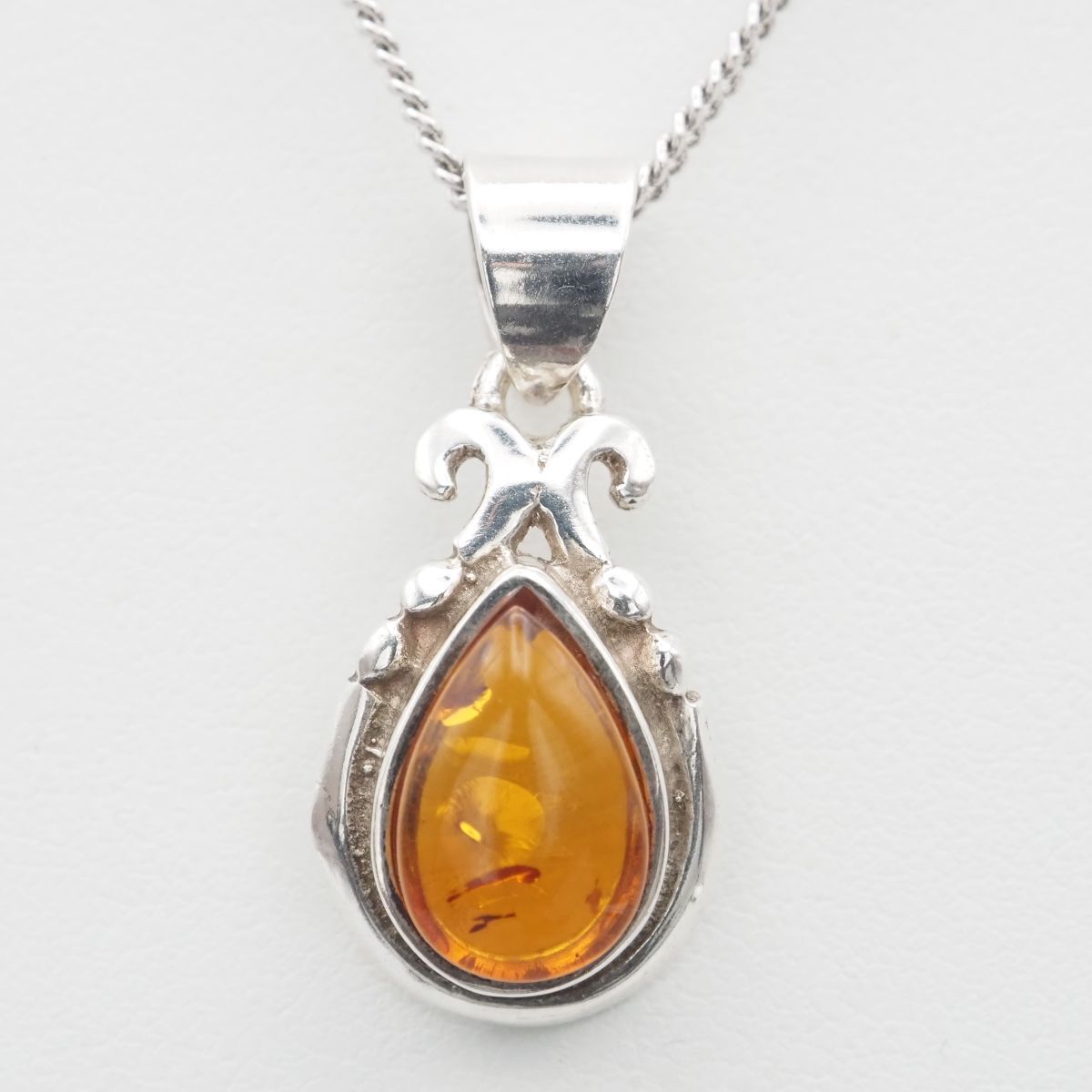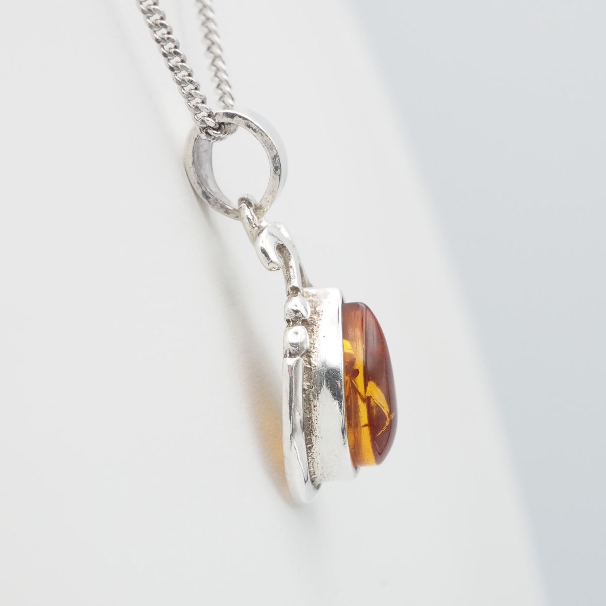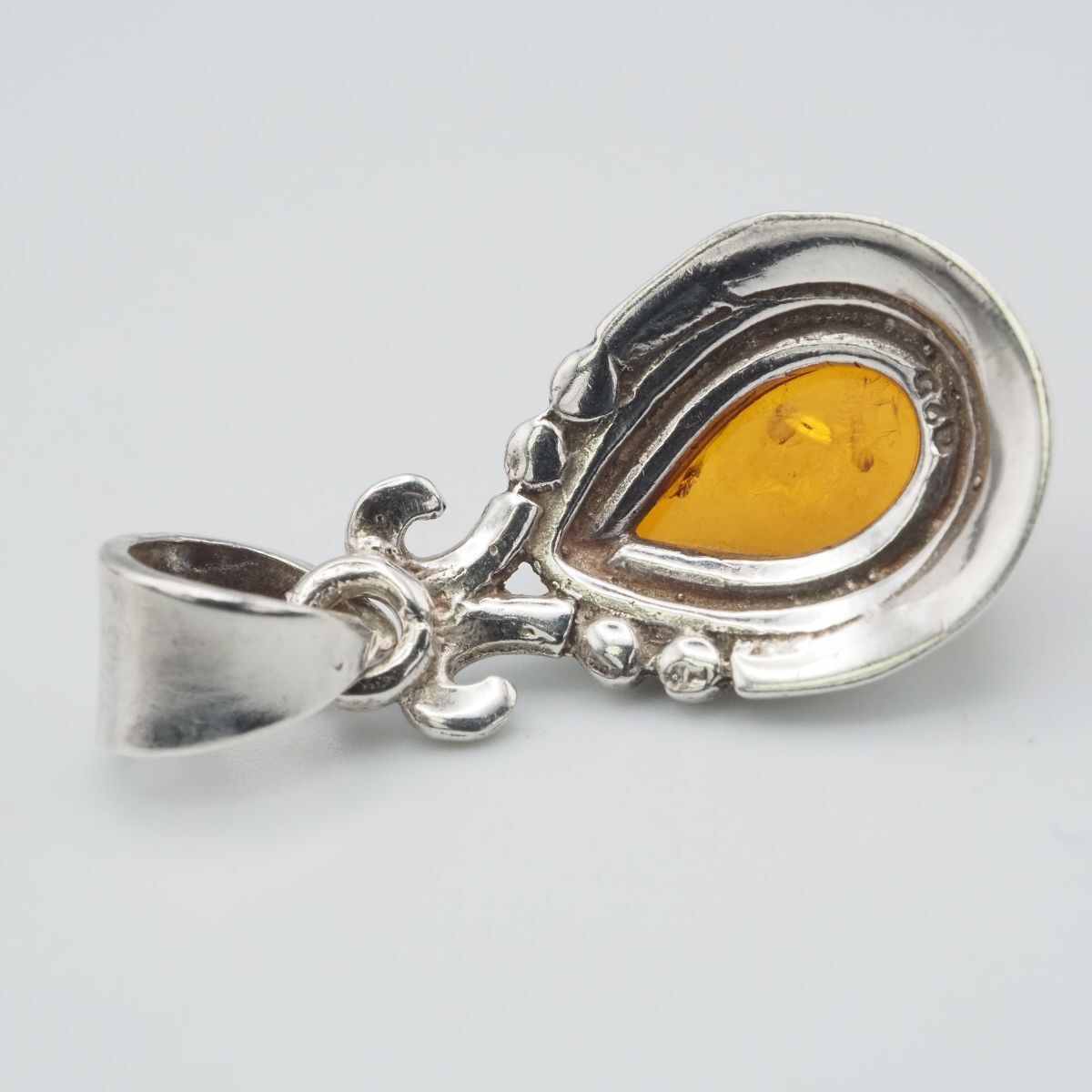 C262 琥珀 コハク アンバー 925刻印 ペンダント トップ デザイン シルバー チャーム ヘッド ヴィンテージ
