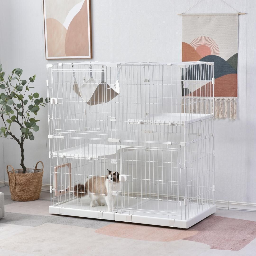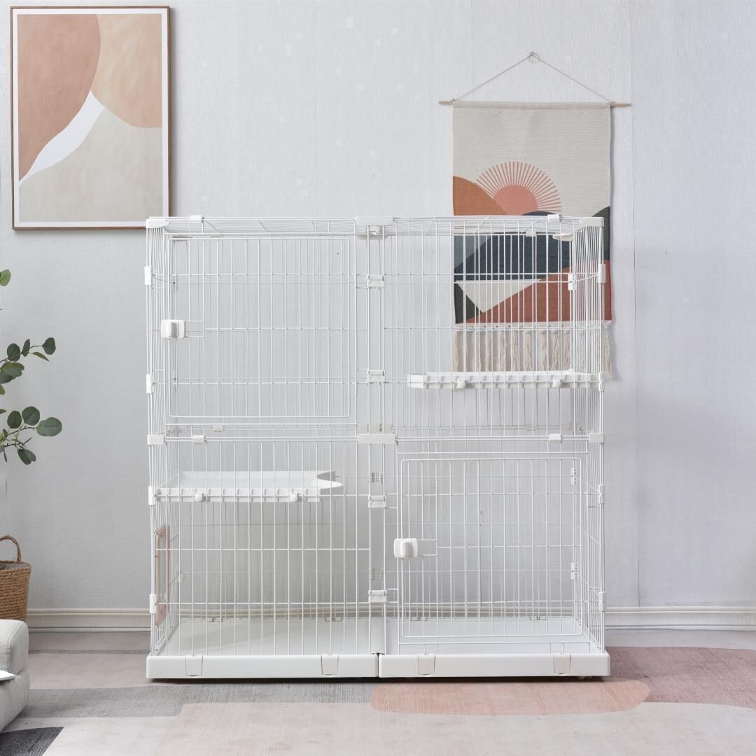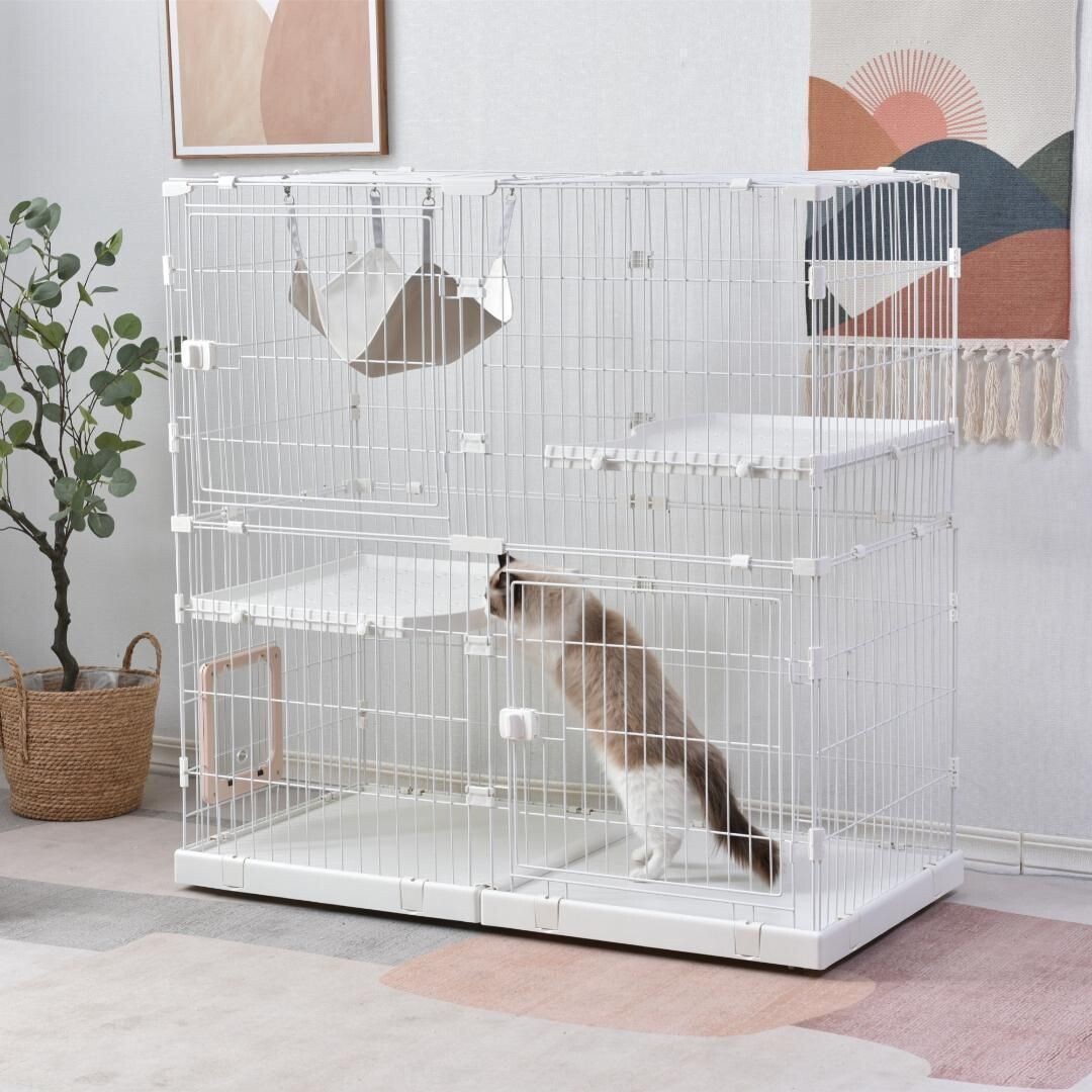 ◆04広い棚板:広々とした棚板があり、猫ちゃんがのんびりリラックスできます。 サイズが十分あるので、棚板に猫ベッドやおもちゃなども置ける。 ケージから棚板を出すことも非常に簡単で、掃除しやすいです。