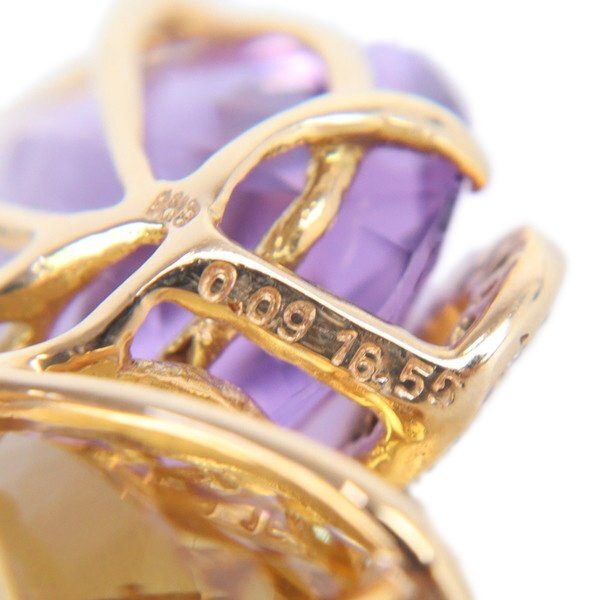 Aランク【ジュエリー】アメジスト ダイヤモンドペンダントトップ/K18YG/6.0g/16.55ct/レディース/アクセサリー