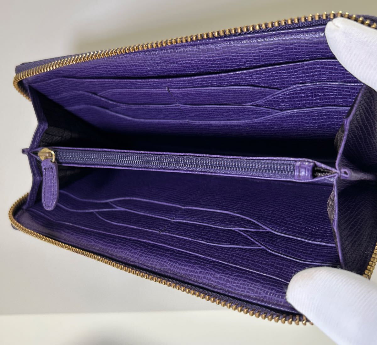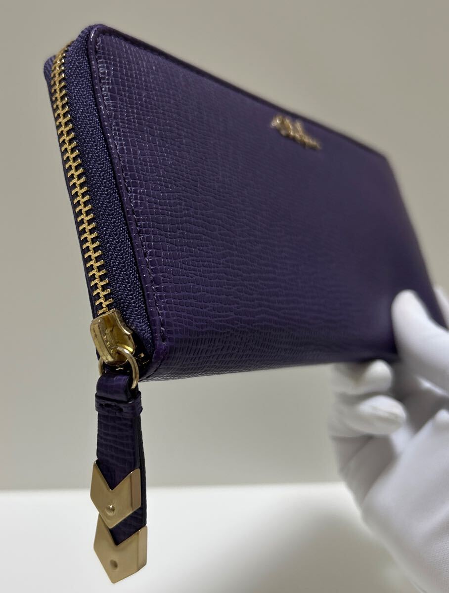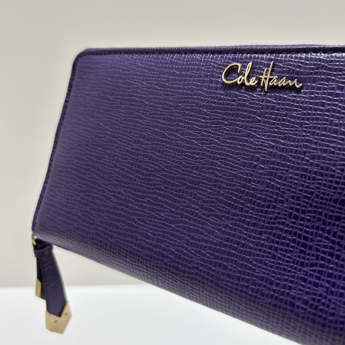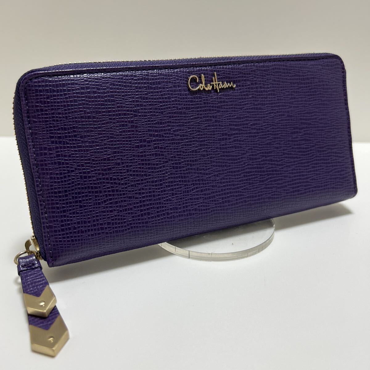 ☆美品☆◆COLE HAAN コールハーン  ラウンドジップ 長財布 パープル◆ コンチネンタル 本革 ロゴ金具 正規品保証【送料無料】0826