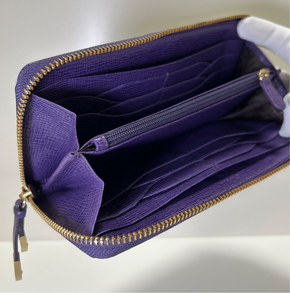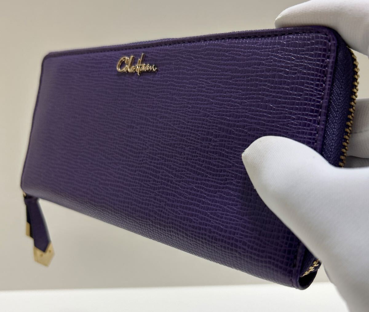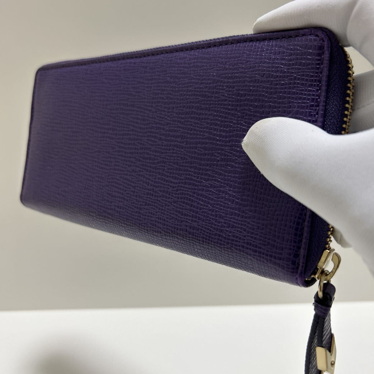 ☆美品☆◆COLE HAAN コールハーン  ラウンドジップ 長財布 パープル◆ コンチネンタル 本革 ロゴ金具 正規品保証【送料無料】0826