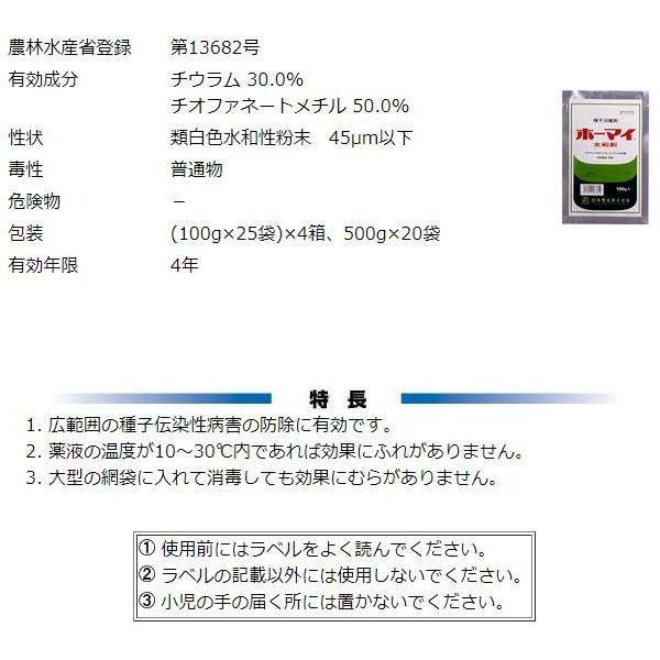 殺菌剤 ホーマイ水和剤 500g 農薬 薬剤 種子伝染性病 対策 ばか苗病 いもち病 つる割病 日本曹達