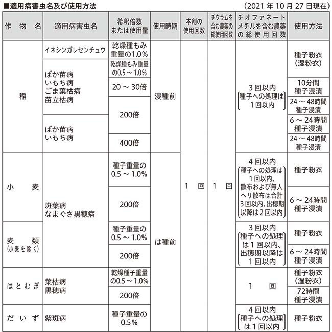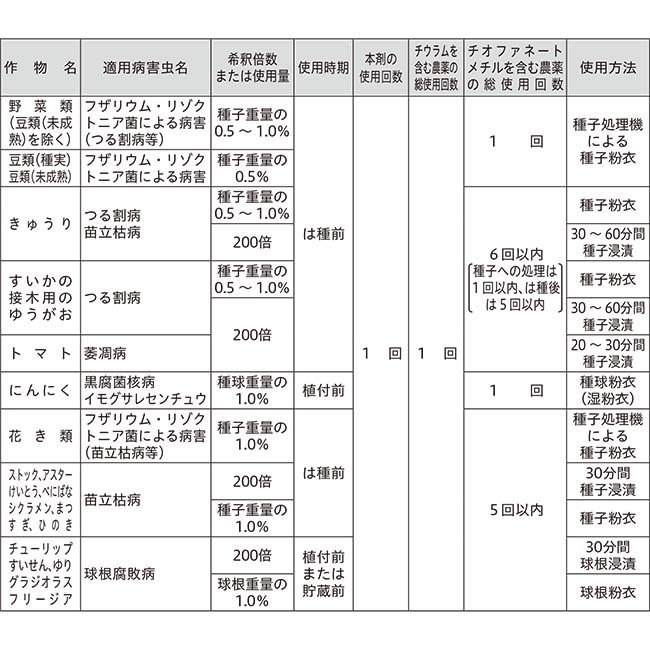 ・有効成分:チウラム 30.0%、チオファネートメチル 50.0%