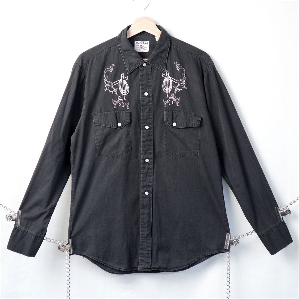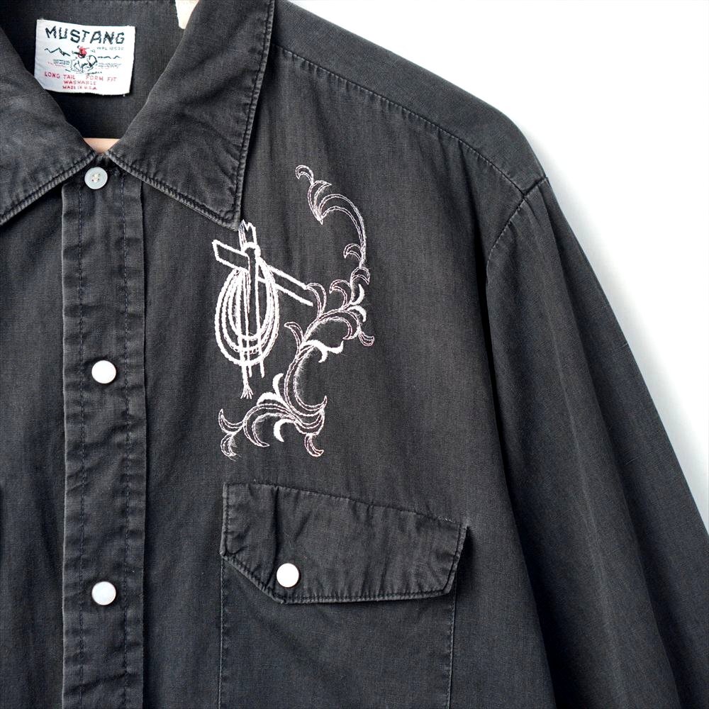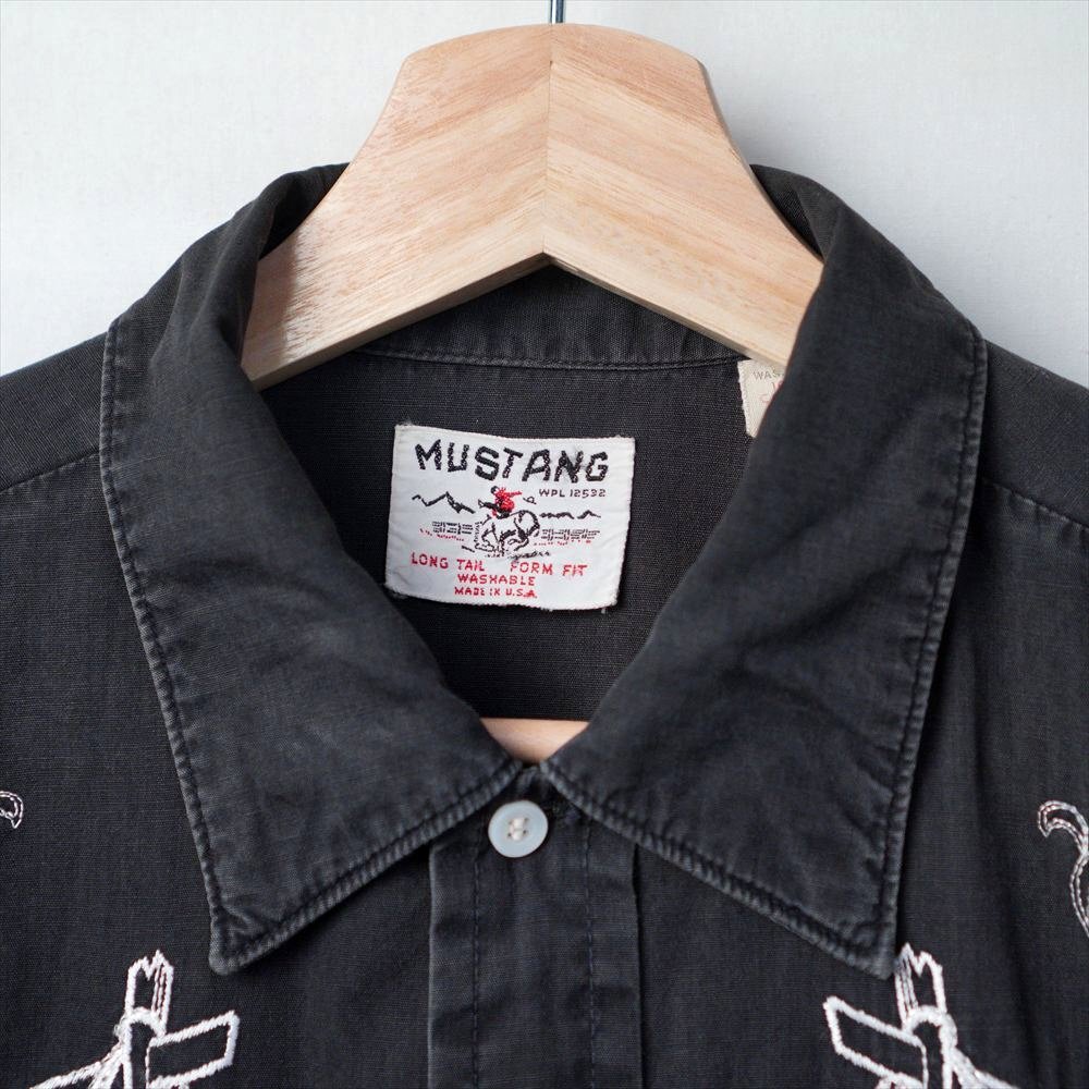 60s ビンテージ MUSTANG ウエスタンシャツ 黒 フェード コットン BLACK BLK 刺繍 M
