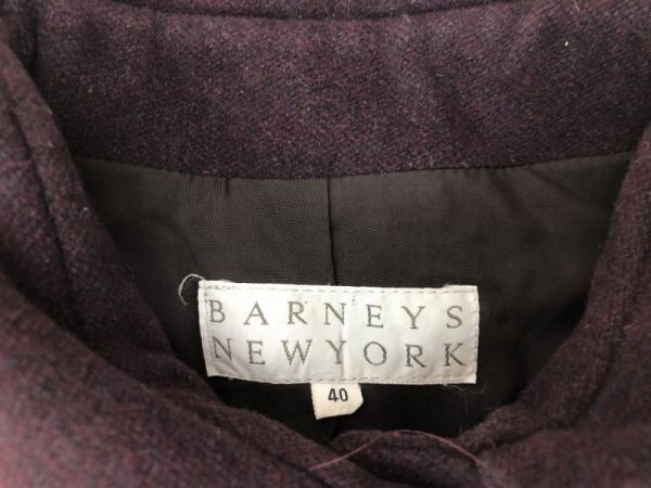 バーニーズニューヨーク Barneys New York トラッド レトロ モード 古着 ウール ツイード 比翼 ロング コート レディース 40 ワインレッド です。