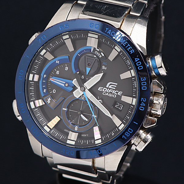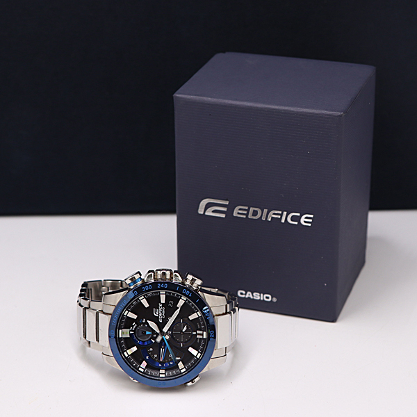 1円 箱付 稼働 良品 カシオ エディフィス 電波ソーラー ブラック文字盤 EQB-800 メンズ腕時計 0109000 8YBY KMR