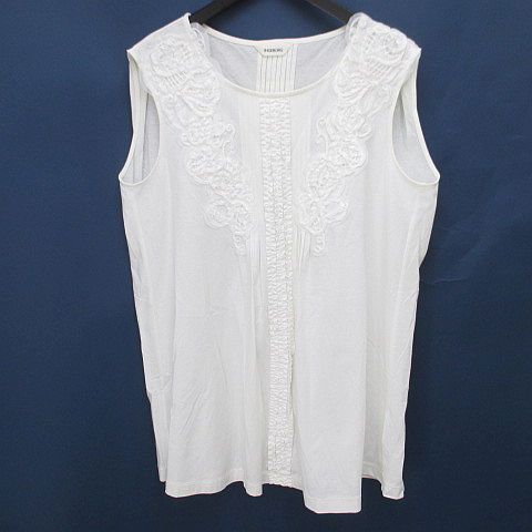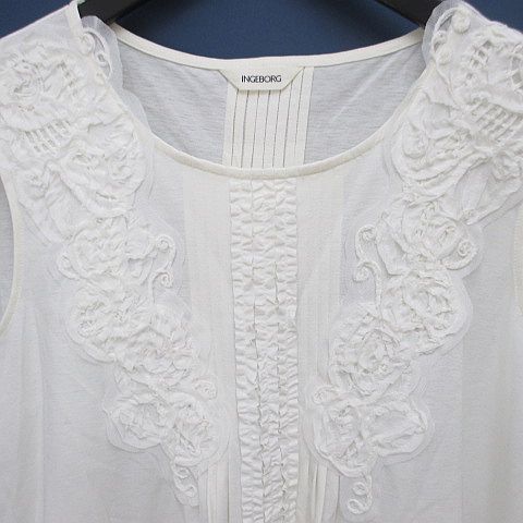 インゲボルグ INGEBORG ノースリーブ カットソー チュニック 白系 ホワイト 日本製 レース 刺繍 レディース