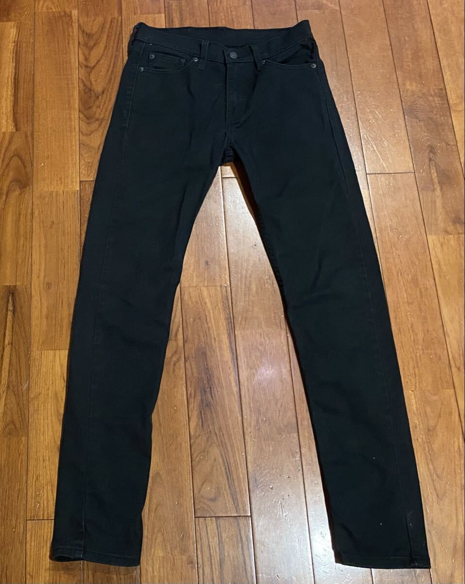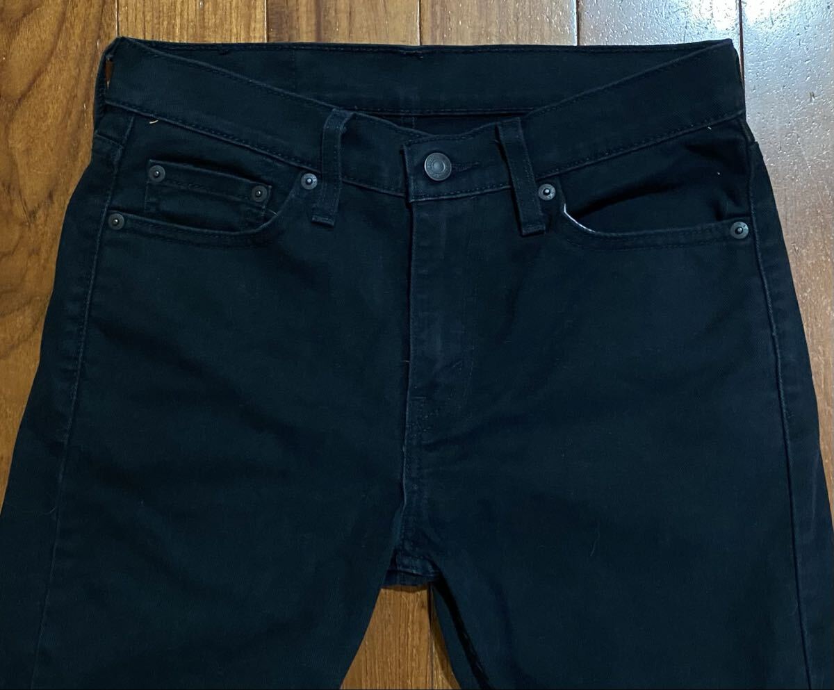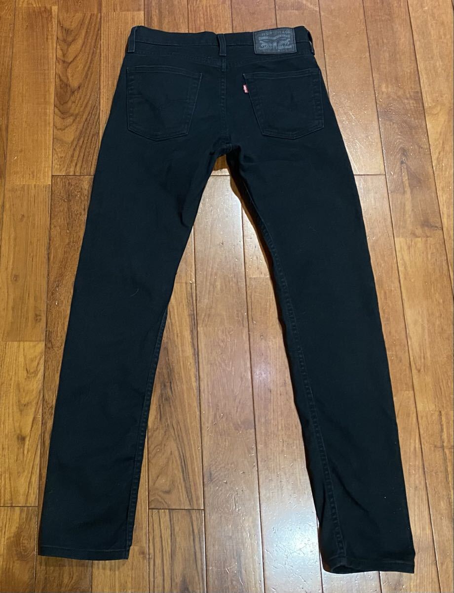 リーバイスのストレッチスキニーデニムパンツ、05510-4173です。色はブラックです。USEDですが状態は良いです(10段階中8程度)。生地はストレッチ入りで綿98%、ポリウレタン2%です。紙パッチ、ジッパーフライです。正規品です(ベトナム製)。サイズはW28でウエストは重ねずに平置きで約71cm、ヒップ約88cm、股上約24cm、股下約76cm、股下15cmのふともも部分約43cm、裾まわり約29cm、重量約490gです。発送はゆうパケットポストになります。