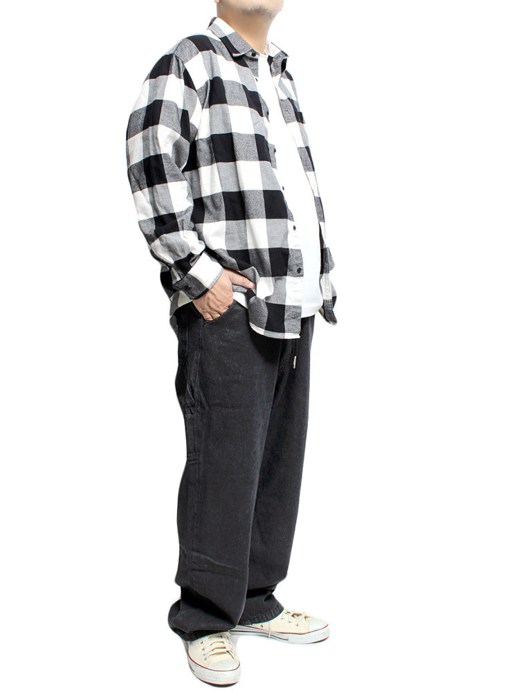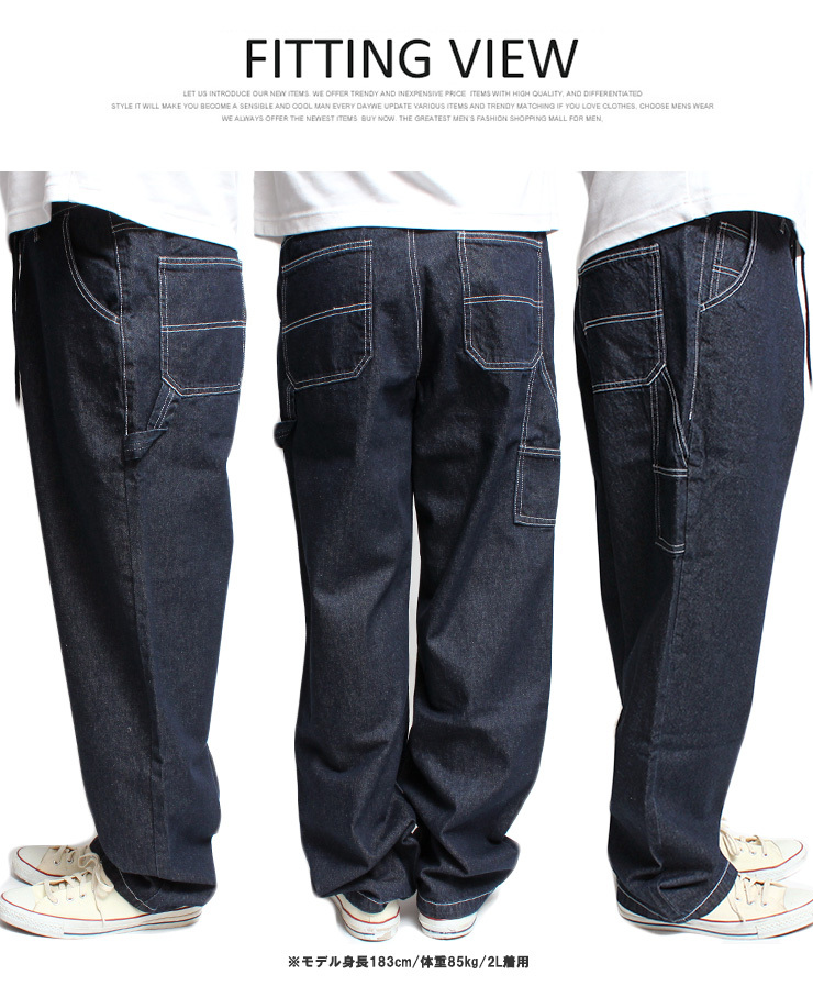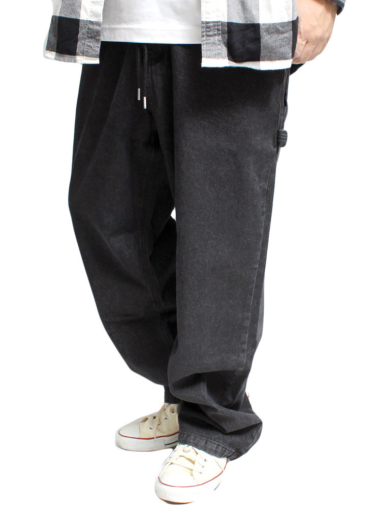 | 商品名 | 【新品】 4L ブラック ワイドパンツ メンズ 大きいサイズ デニム ユーズド加工 ゆったり ルーズシルエット ワイドデニム ジーンズ ペインターパンツ |