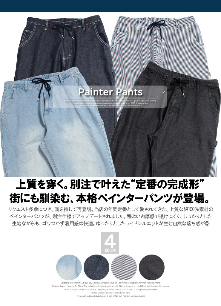 | 商品説明 | コーディネートに今年らしさをプラスしてくれる、ワイドシルエットのデニムペインターパンツ。 |