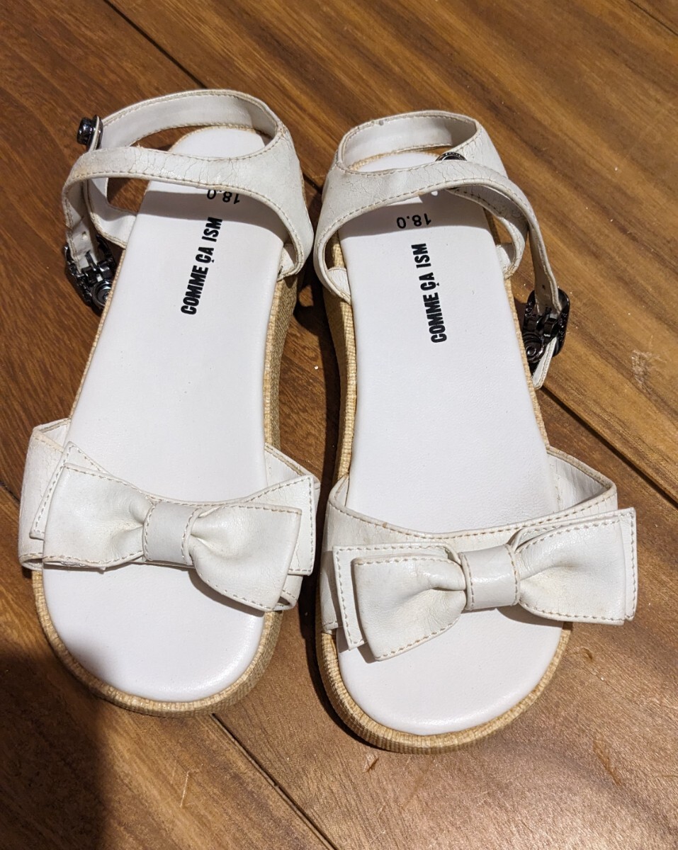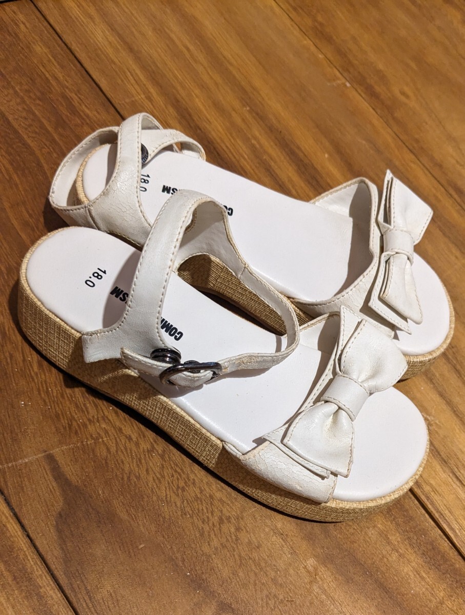 未使用 コムサ★リボン付きホワイトサンダル
