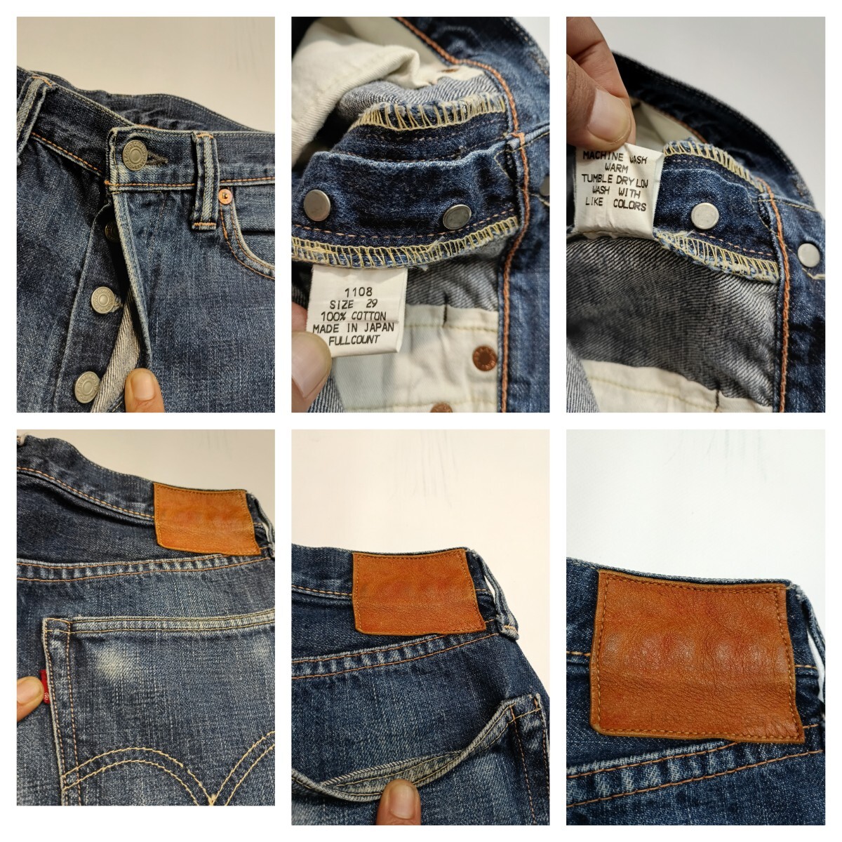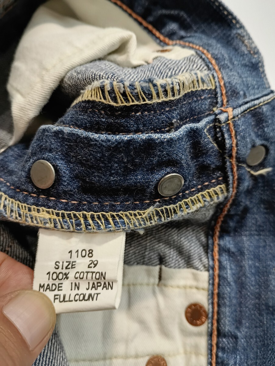 FULL COUNT フルカウント 日本製 1108 濃紺色落ちデニム 赤耳 ジーンズ パンツ W29 約73cm 革パッチ FULLCOUNT