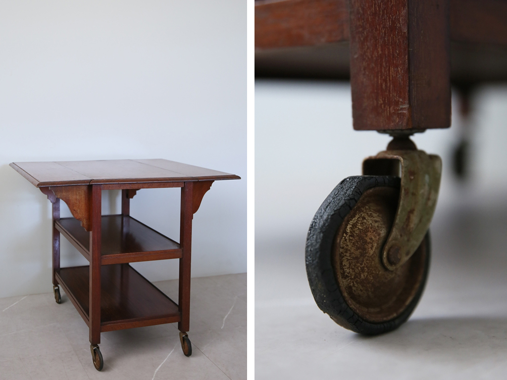 イギリスの田舎で見つけた古いドロップリーフのトロリーテーブルです。