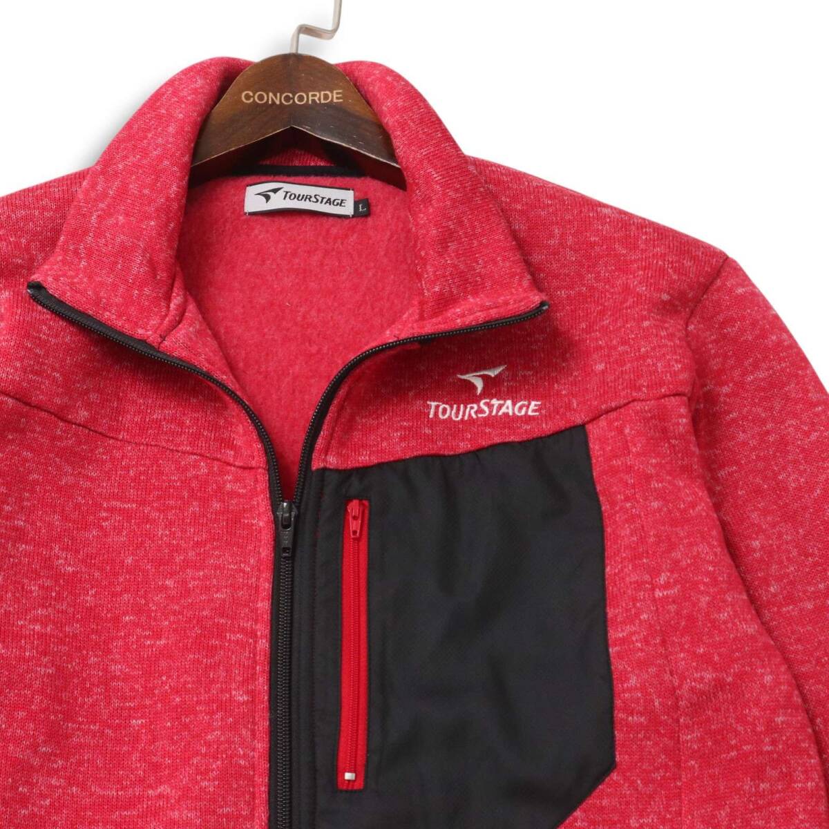 【美品】 TOURSTAGE ツアーステージ ゴルフ 秋冬 ロゴ刺繍★ 裏起毛 ニット フルジップ ジャケット ブルゾン Sz.L メンズ