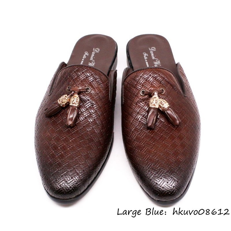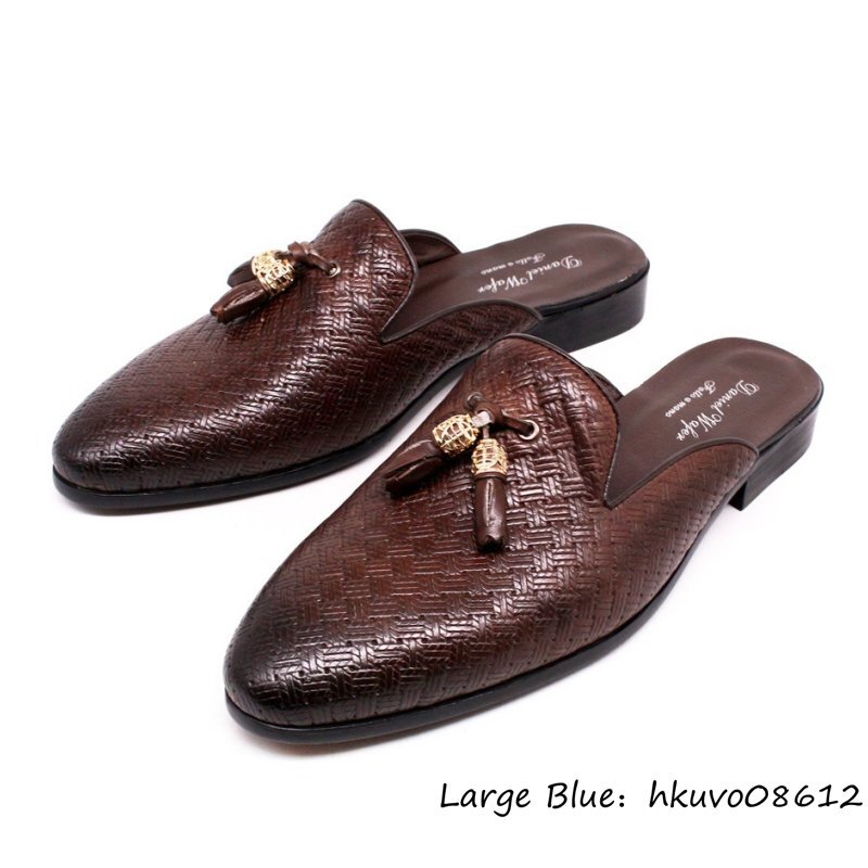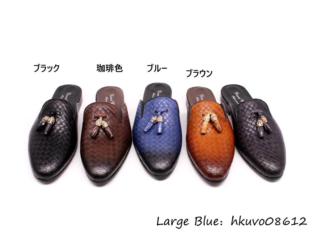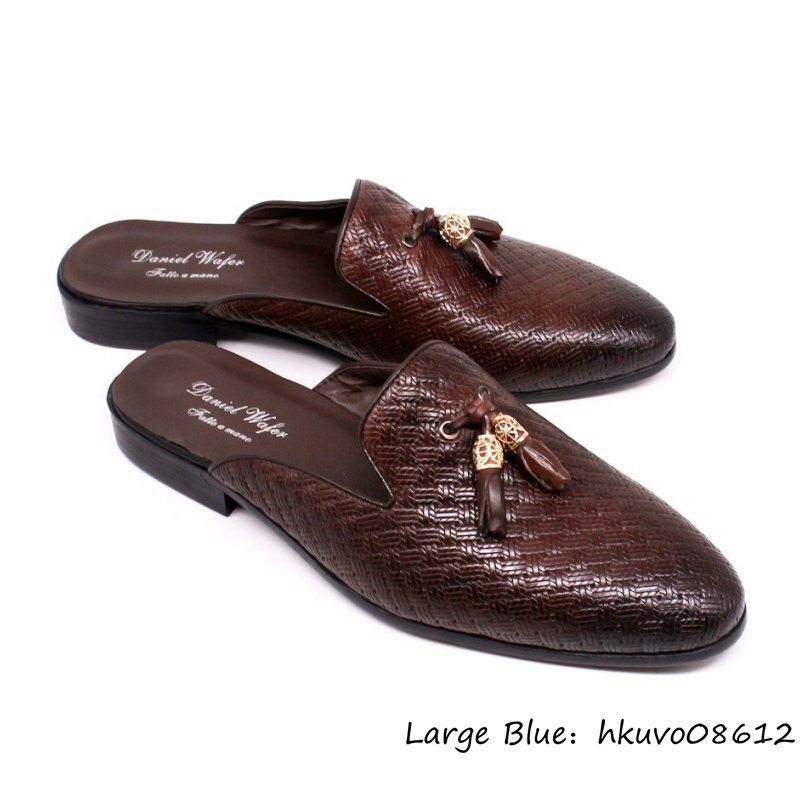 極美品★定価7万超 レザーシューズ 本革 編み込み ハンドメイド ビジネスシューズ スリッポン 紳士靴 牛革 革靴 スリッパ 珈琲色 25.5cm