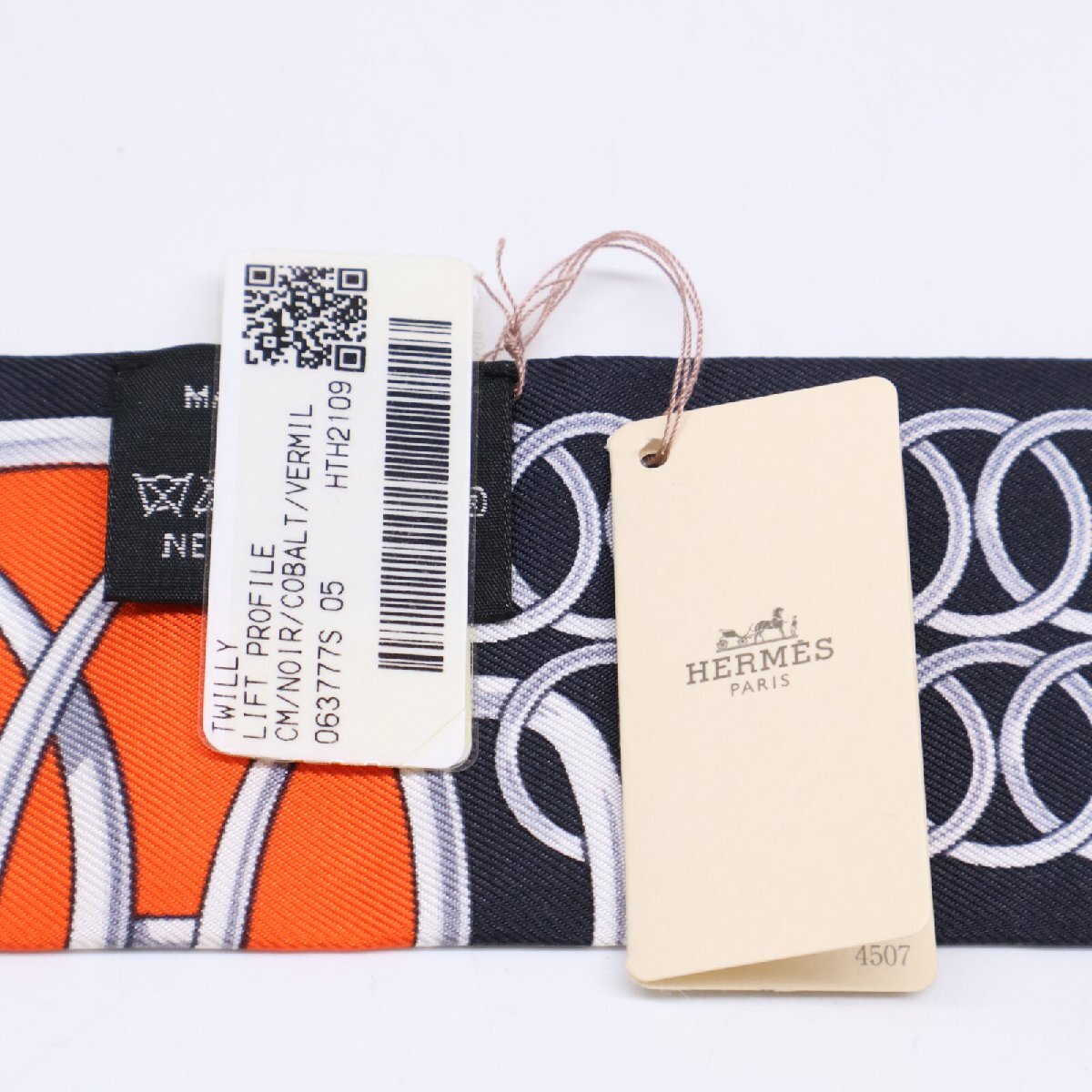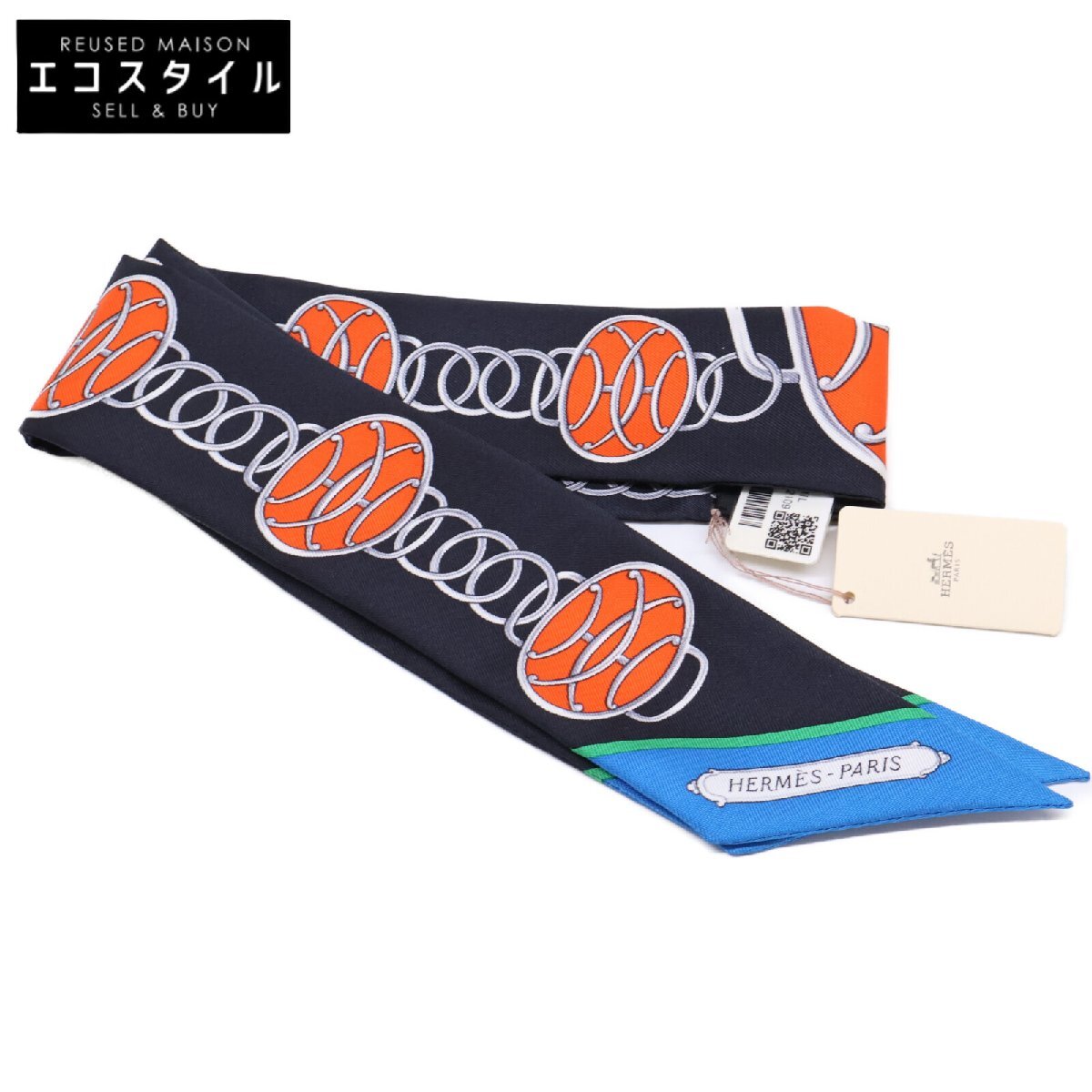 新品同様/ HERMES エルメス LIFT PROFILE リフトプロフィール シルク100% ツイリー スカーフ ブラック系 レディース