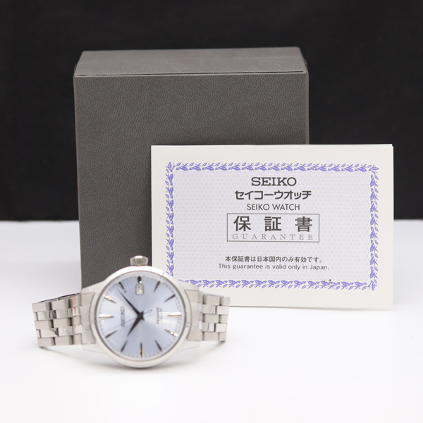 1円 稼働 保/箱付 セイコー プレサージュ 4R35-01T0 AT/自動巻 デイト 水色文字盤 メンズ腕時計 0013200 8BJT KTS