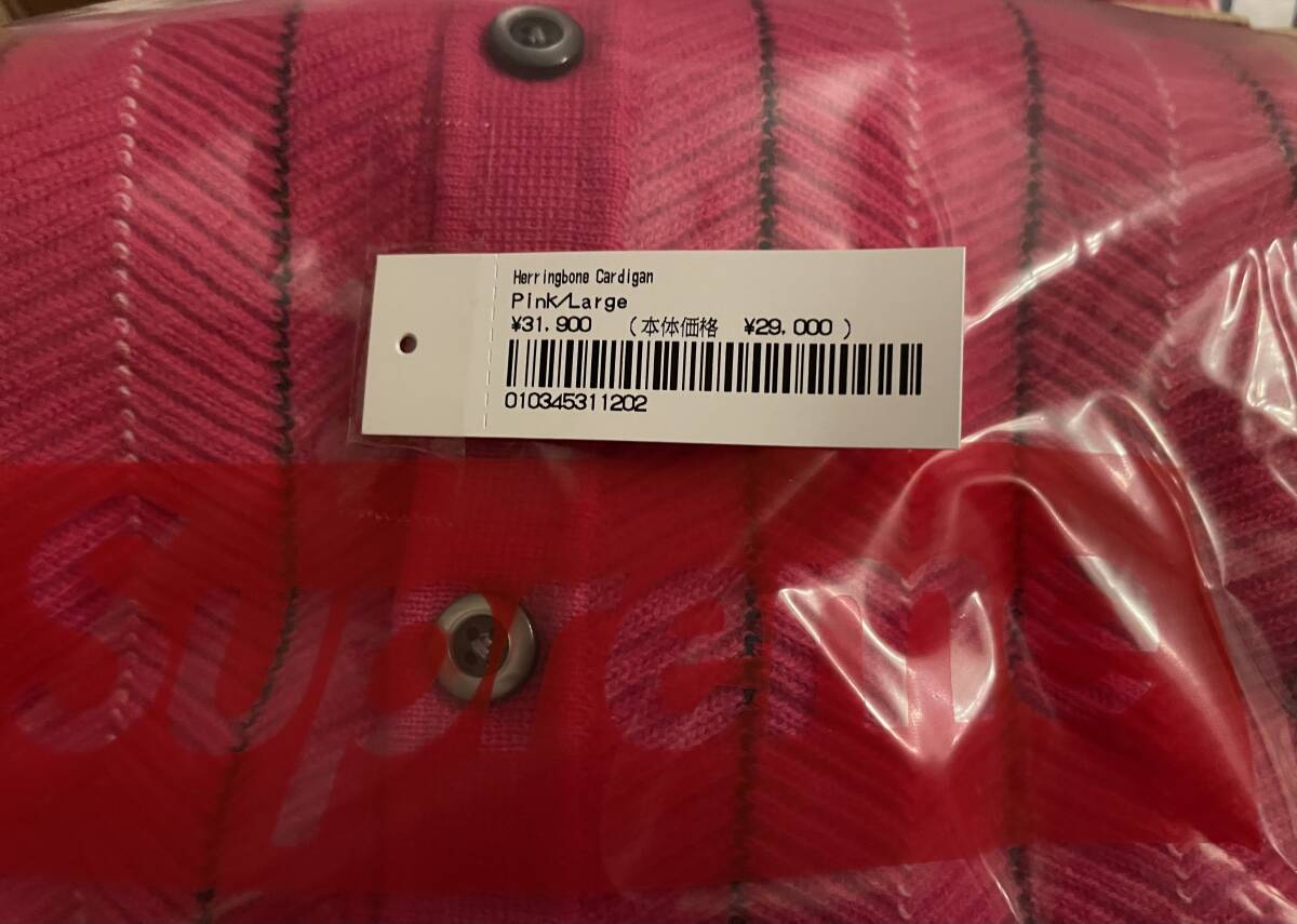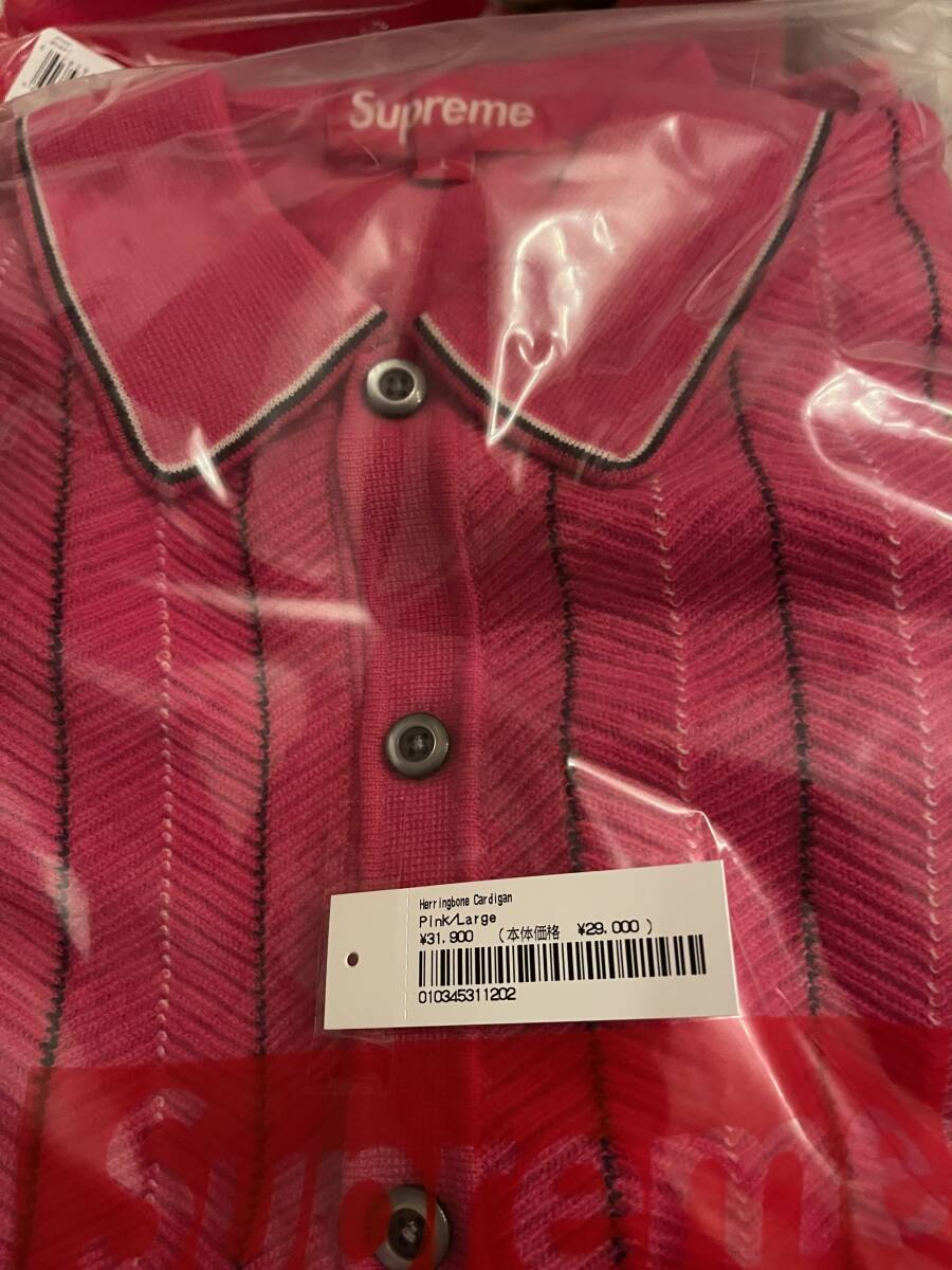 【新品】Supreme Herringbone Cardigan COLOR/STYLE:Pink SIZE:Large