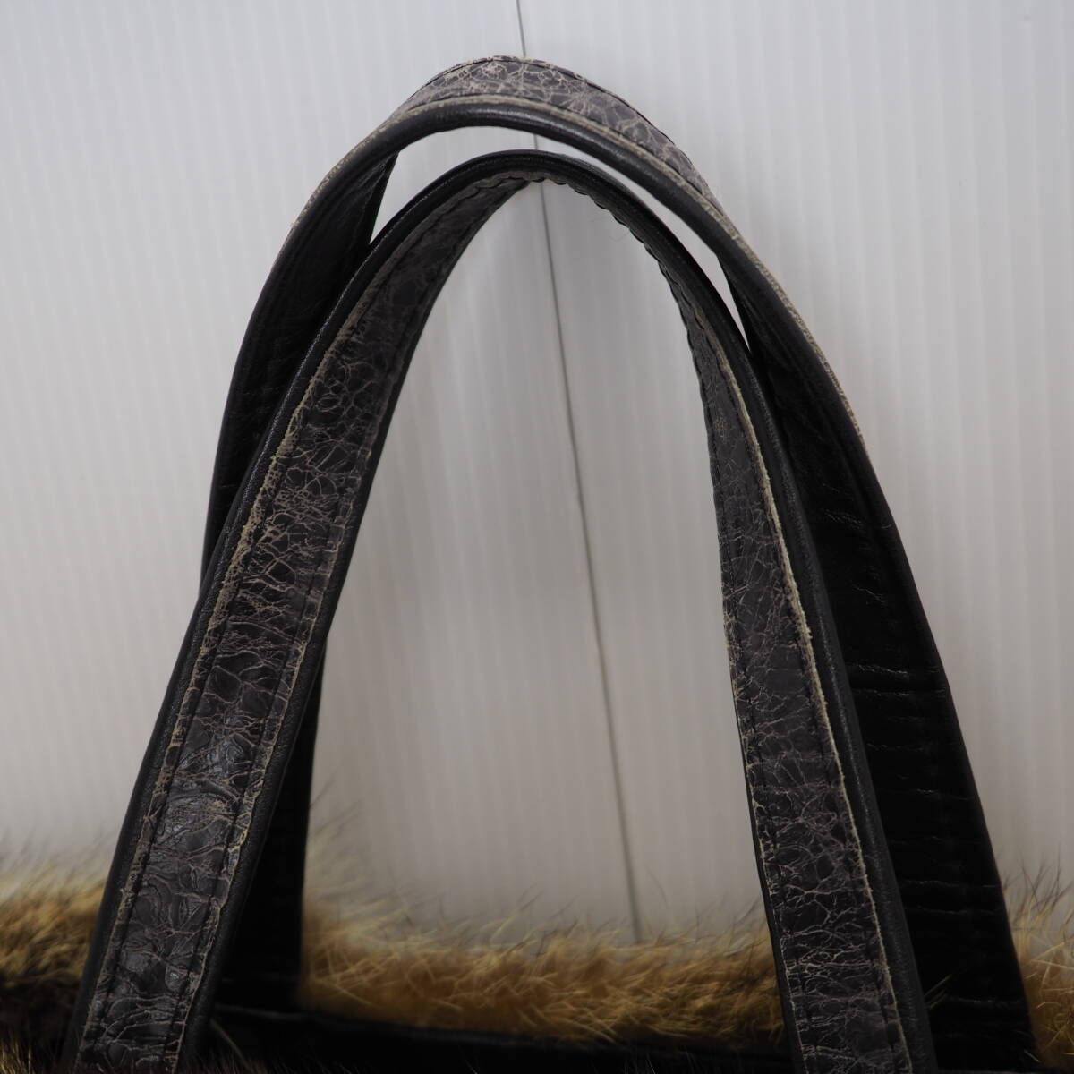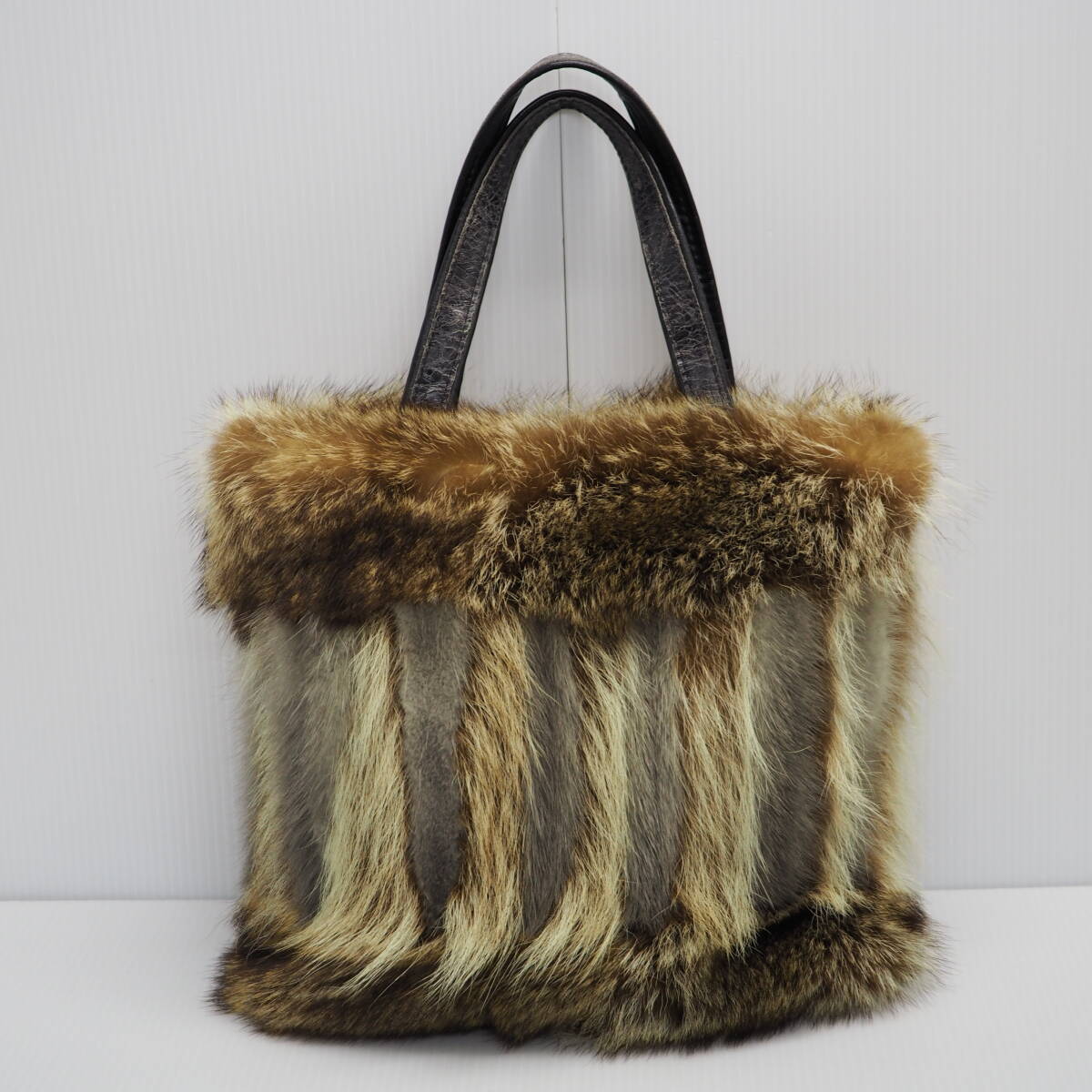 リアルファー ハンドバッグ 日本製 たぬき 本革 毛皮 ビンテージ 狸 タヌキ