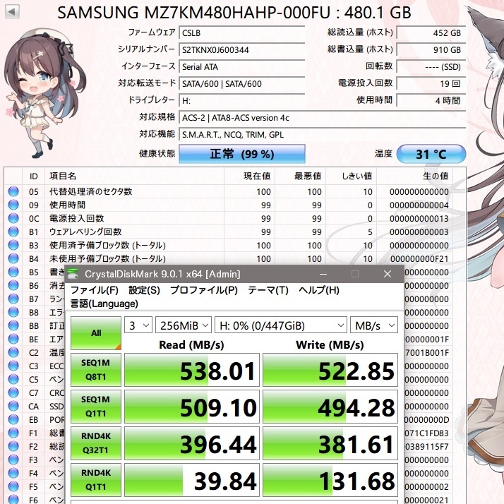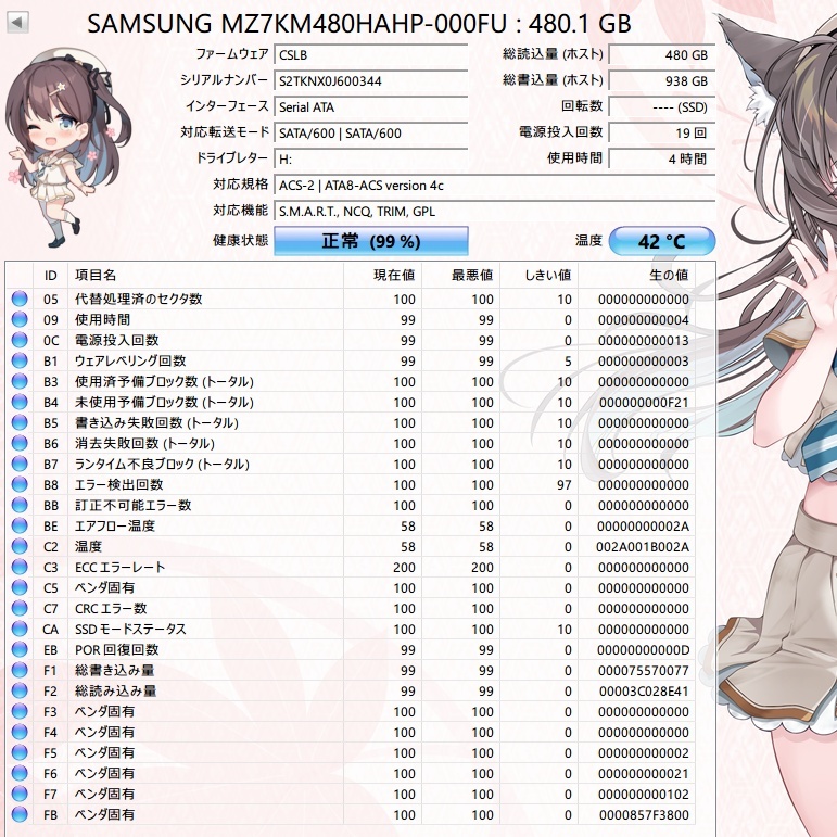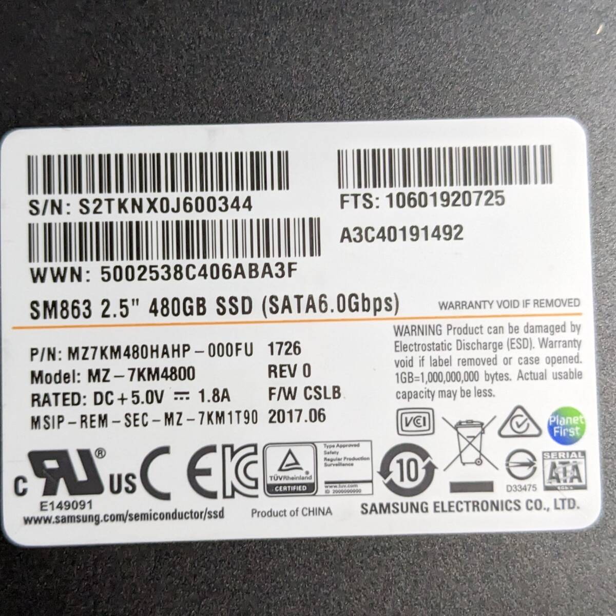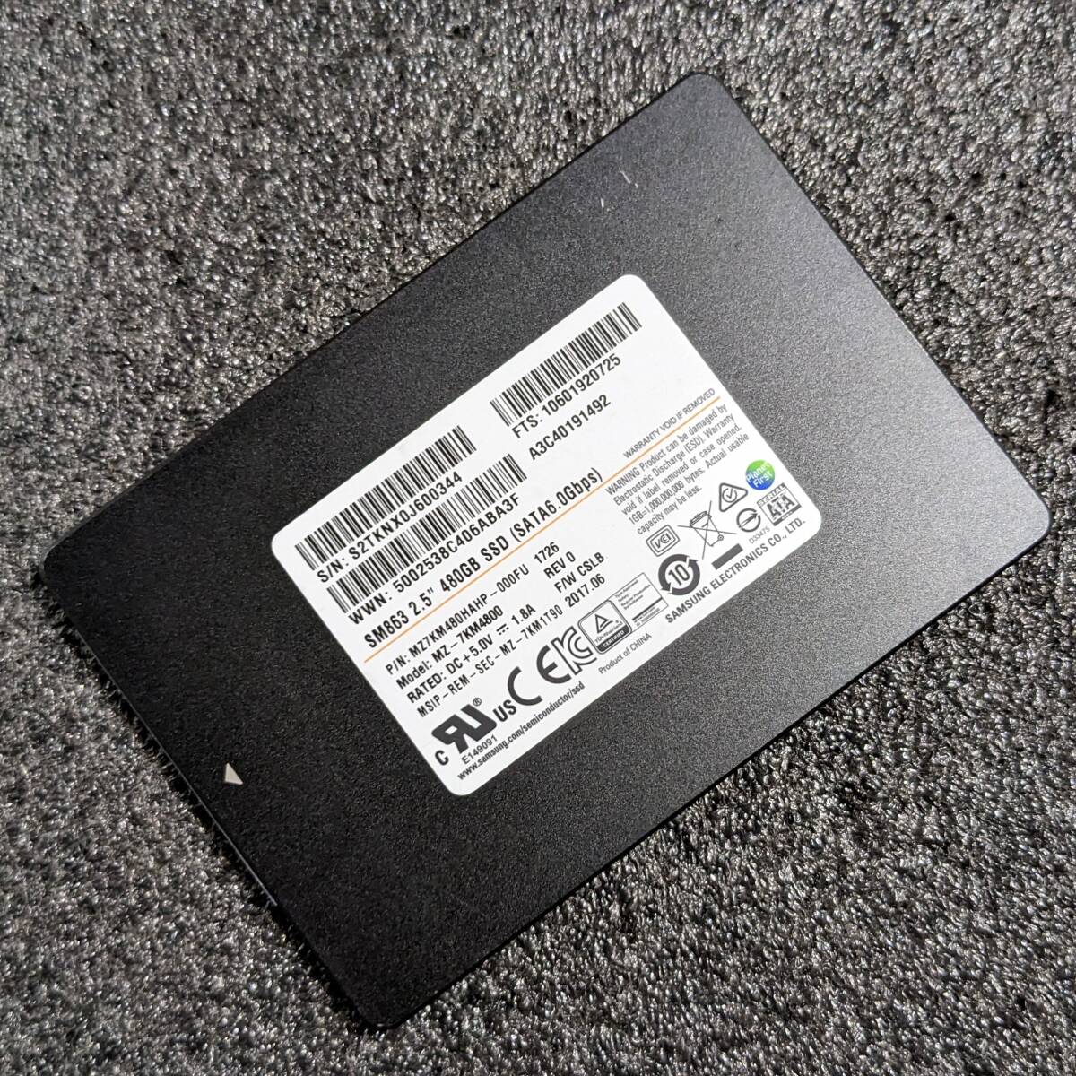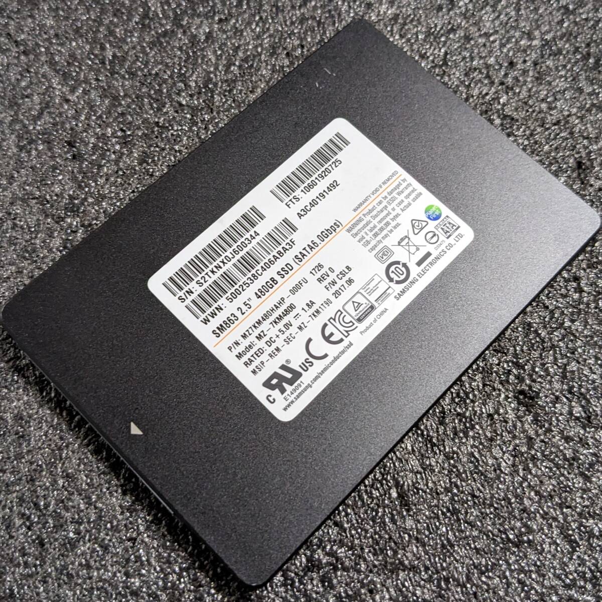 【中古】SAMSUNG SM863 480GB MZ7KM480HAHP-000FU [2.5インチ SATA3 7mm厚 MLC 健康状態:99%]